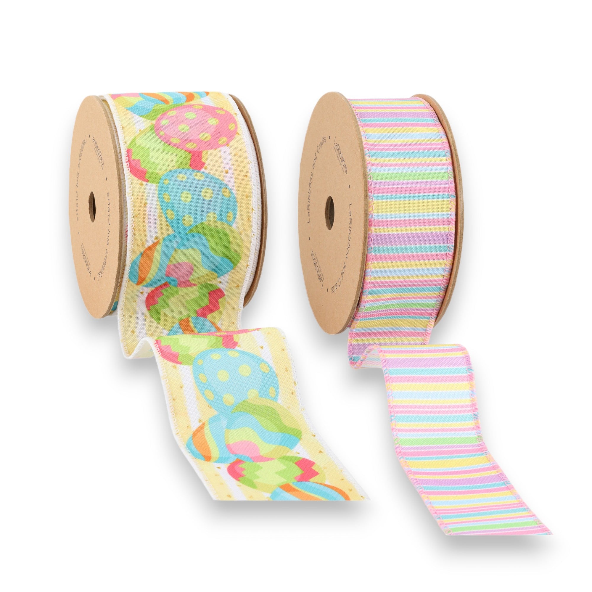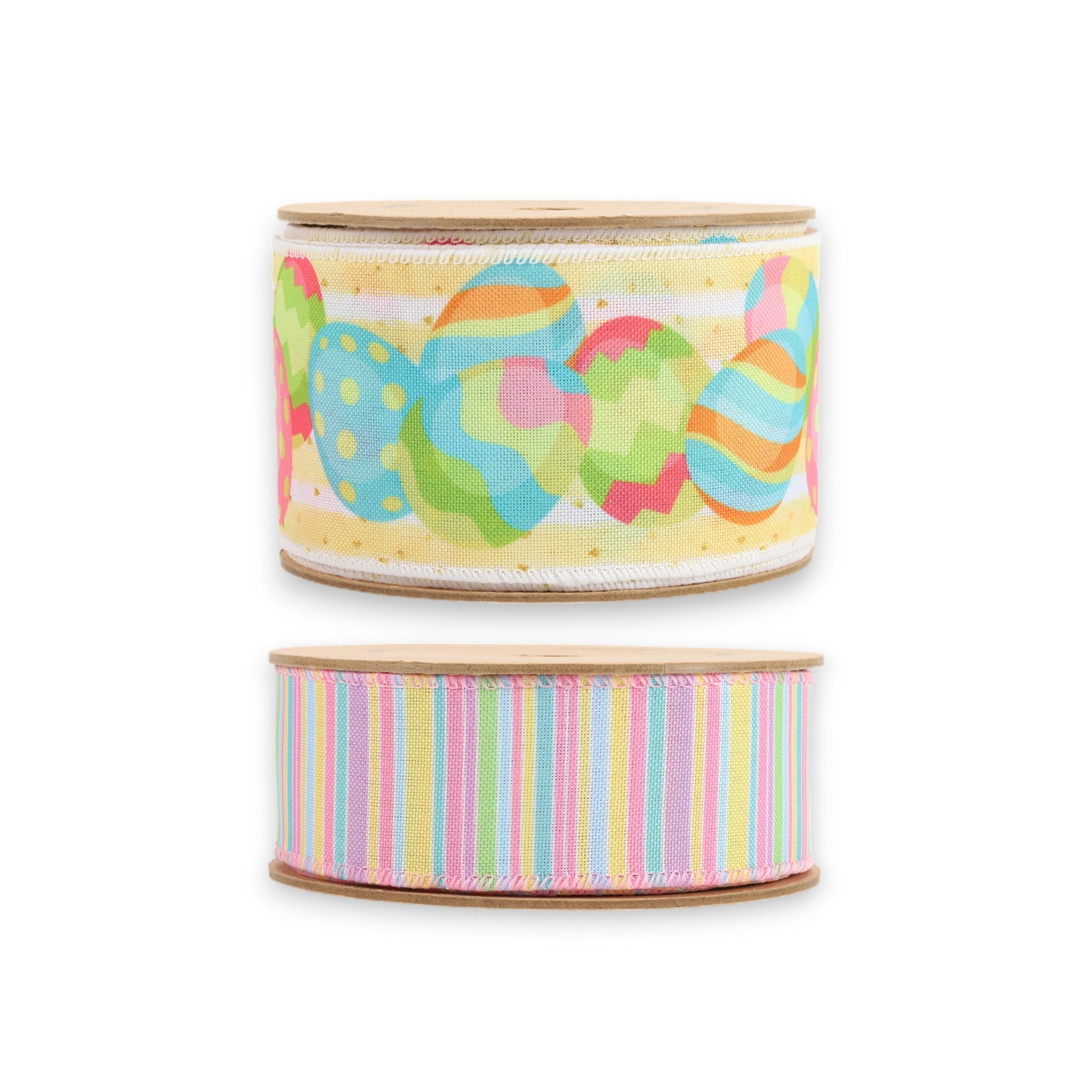 1 1/2" -2 1/2" Easter Egg & Striped Wired Ribbon Bundle - 2 Rolls/20 Yards Total