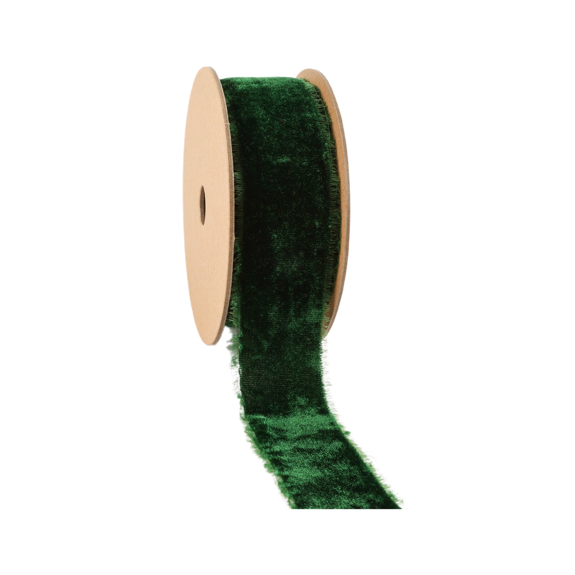 1 1/2" Frayed Edge Velvet Ribbon | Spruce | 5 Yard Roll
