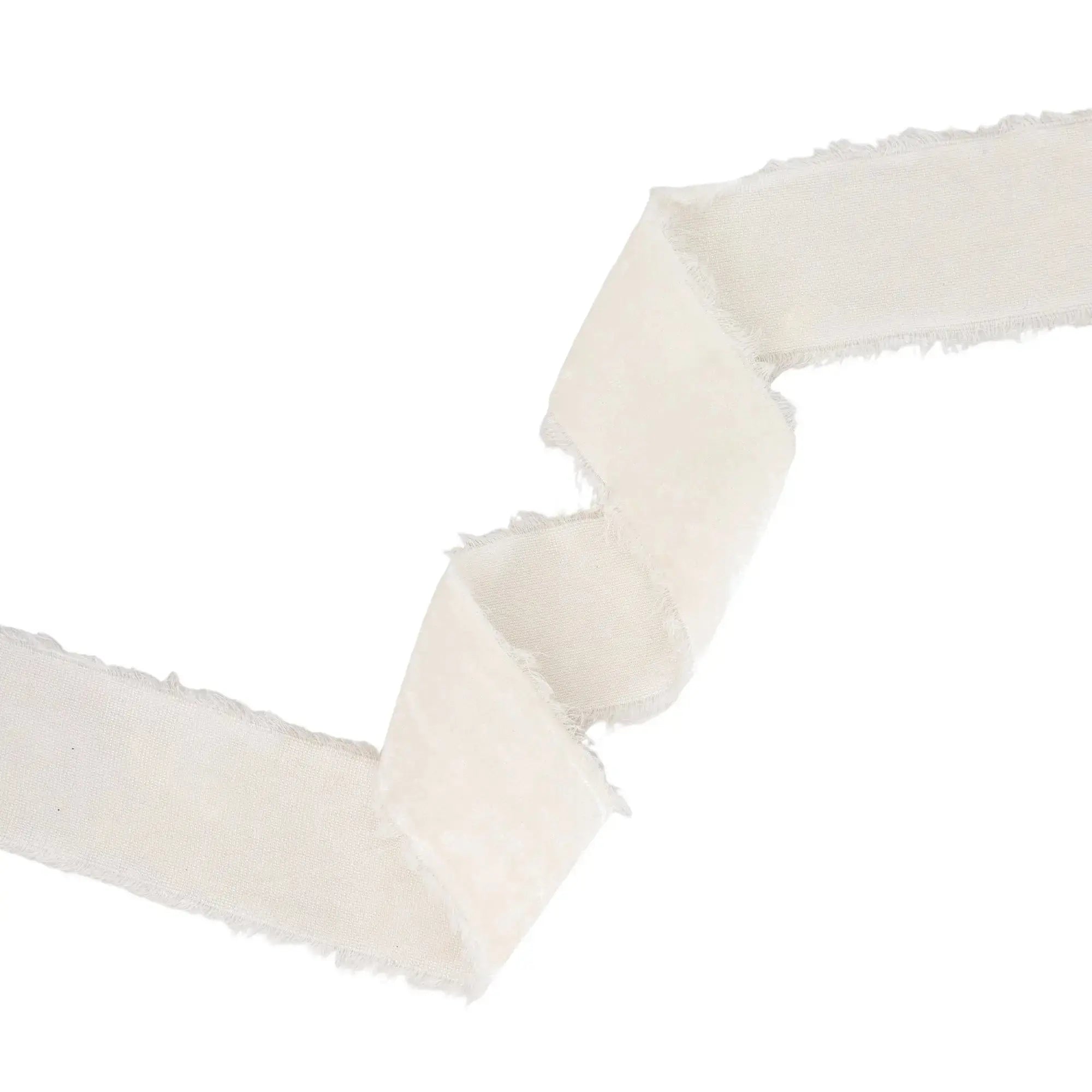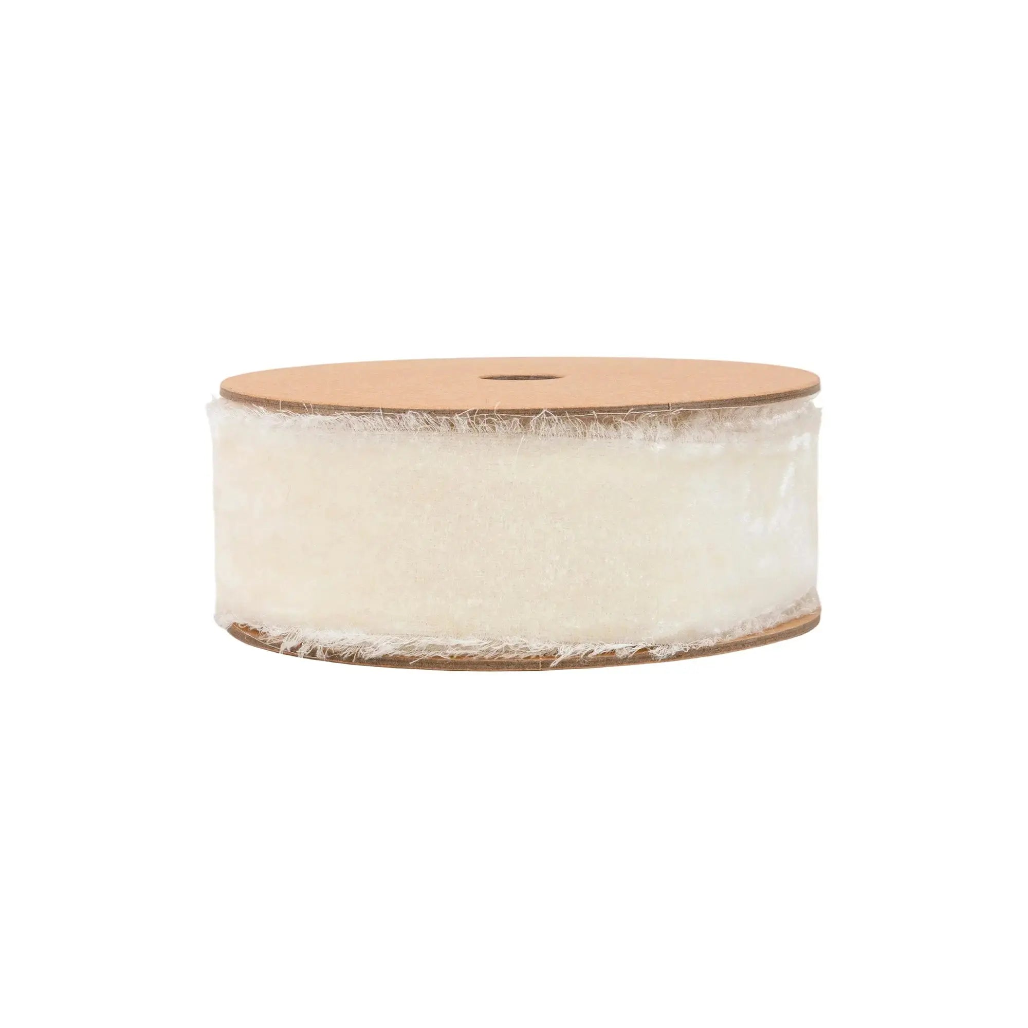1 1/2" Frayed Velvet | Antique White | 5 Yard Roll