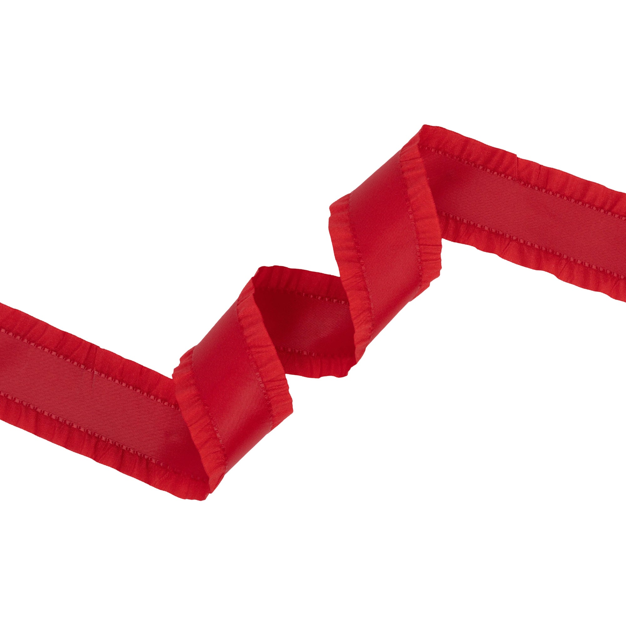 • Elegant 1 1/2" red satin ribbon with delicate ruffled edges for a soft, romantic touch.