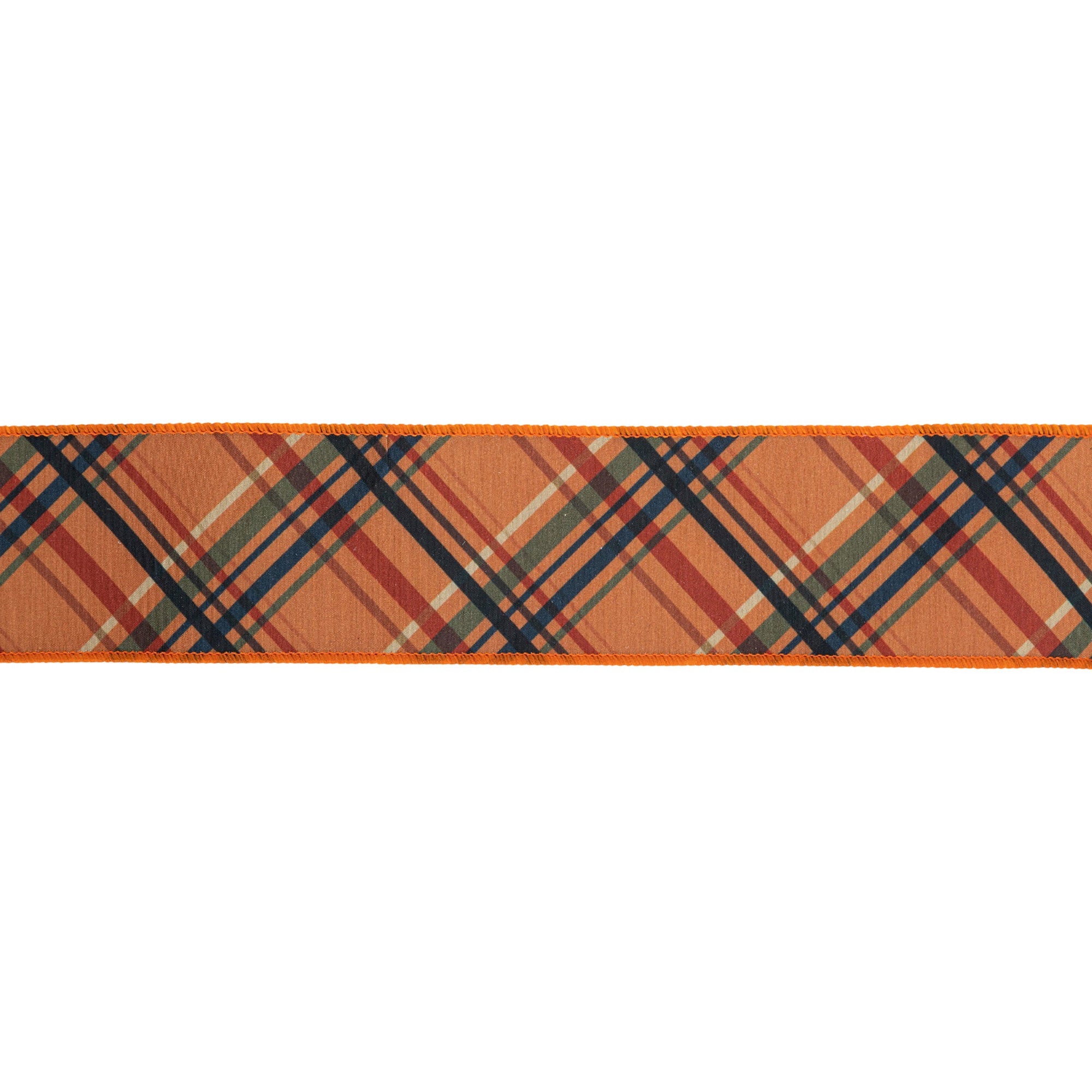 2 1/2" Wired Dupioni | Fall Color Bias Plaid with Black Backing | 10 Yard Roll