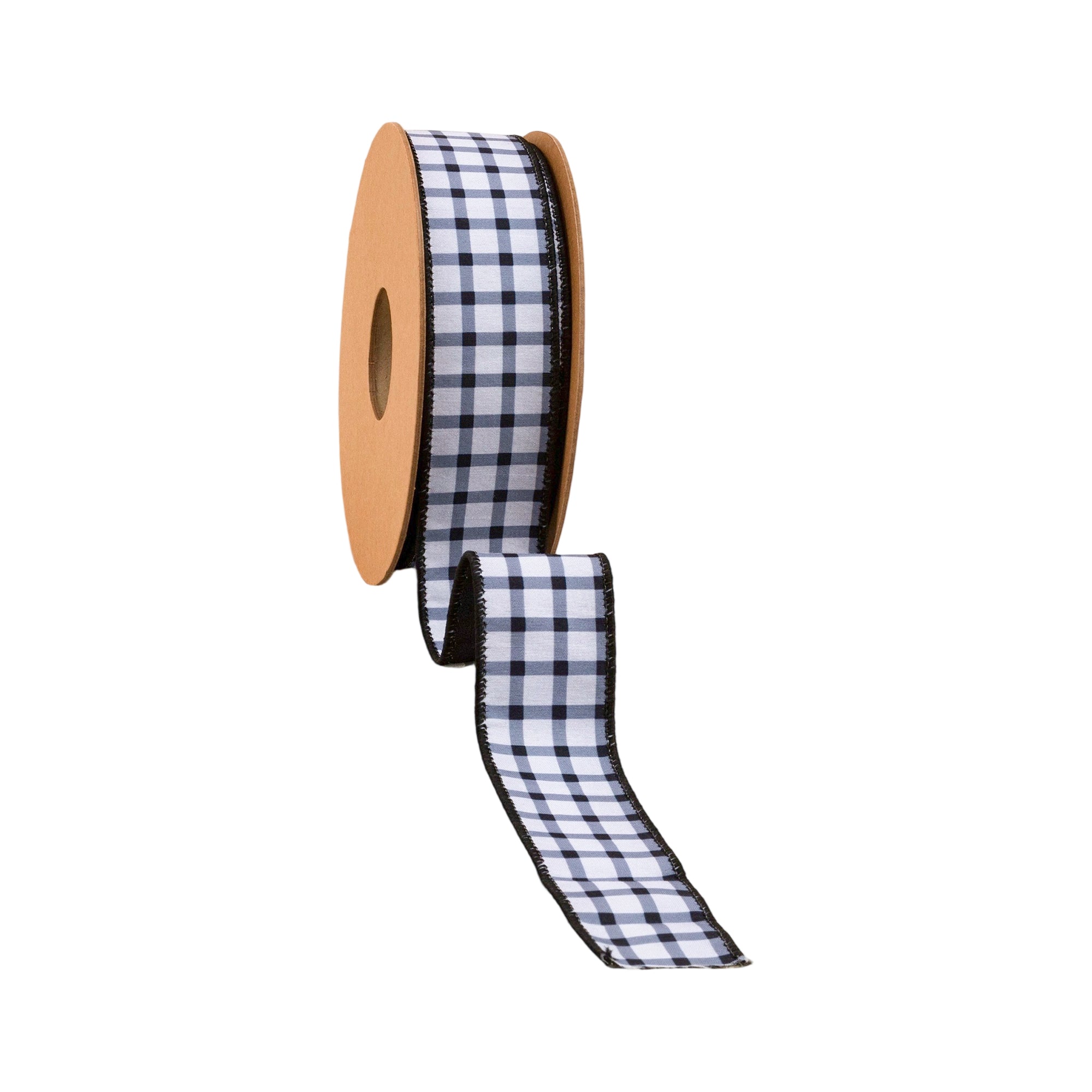 1 1/2" Wired Dupioni Ribbon | Black Grid on White w/Black Backing | 10 Yard Roll