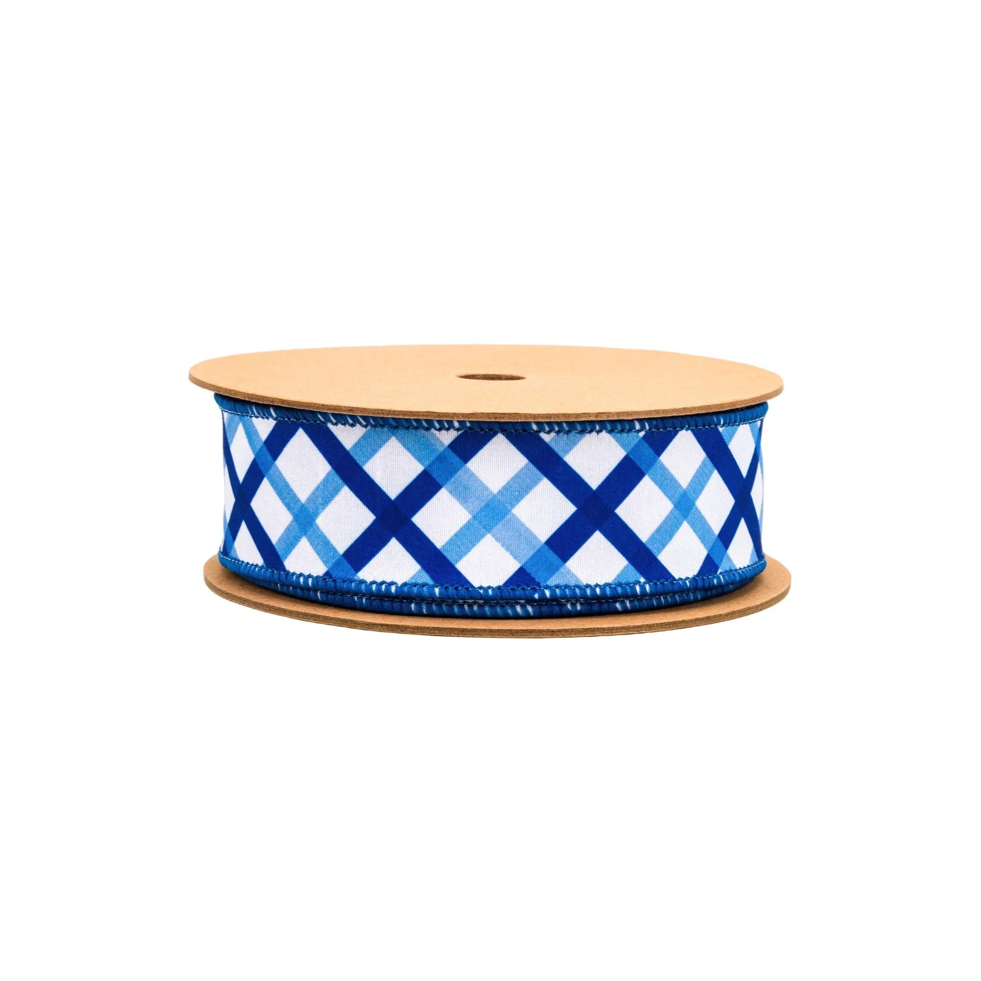 1 1/2" Wired Dupioni Ribbon | Blue and White Decorative Stripe w/ Blue Backing | 10 Yard Roll