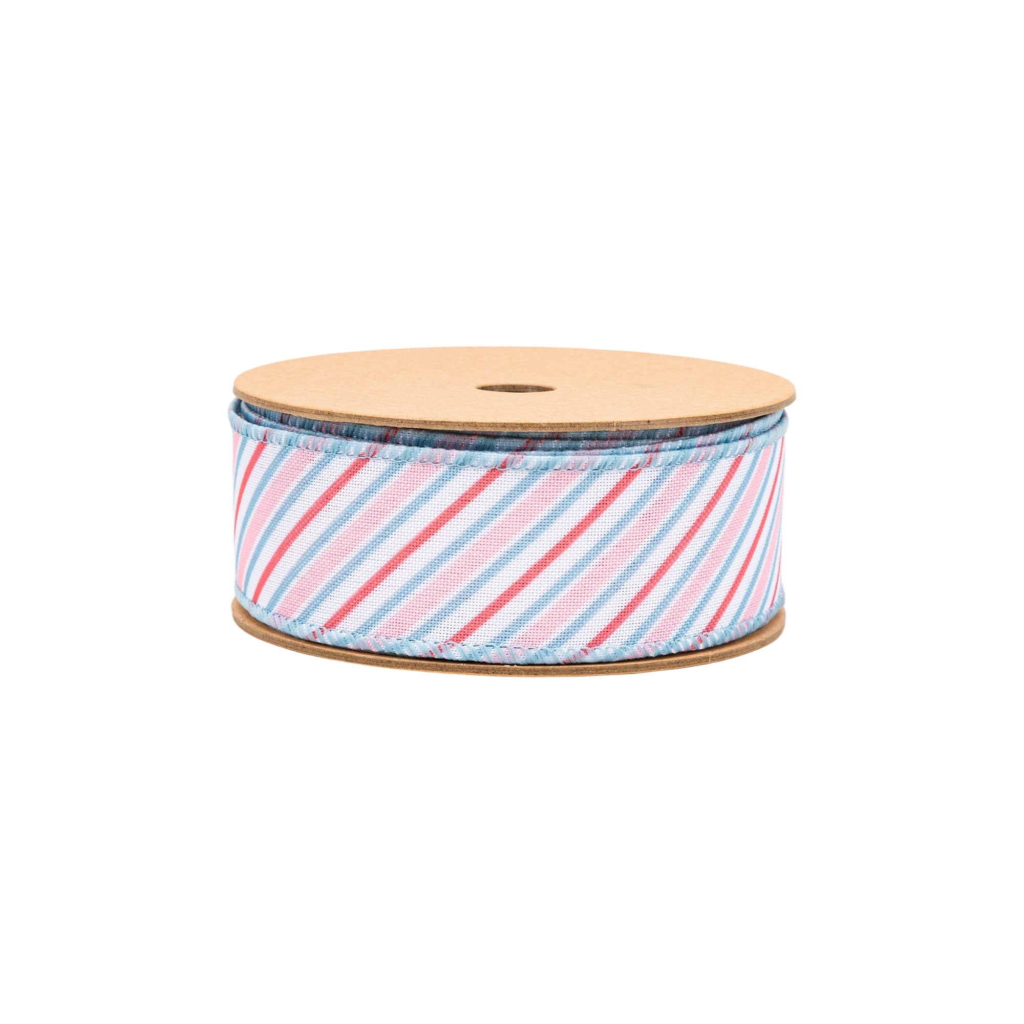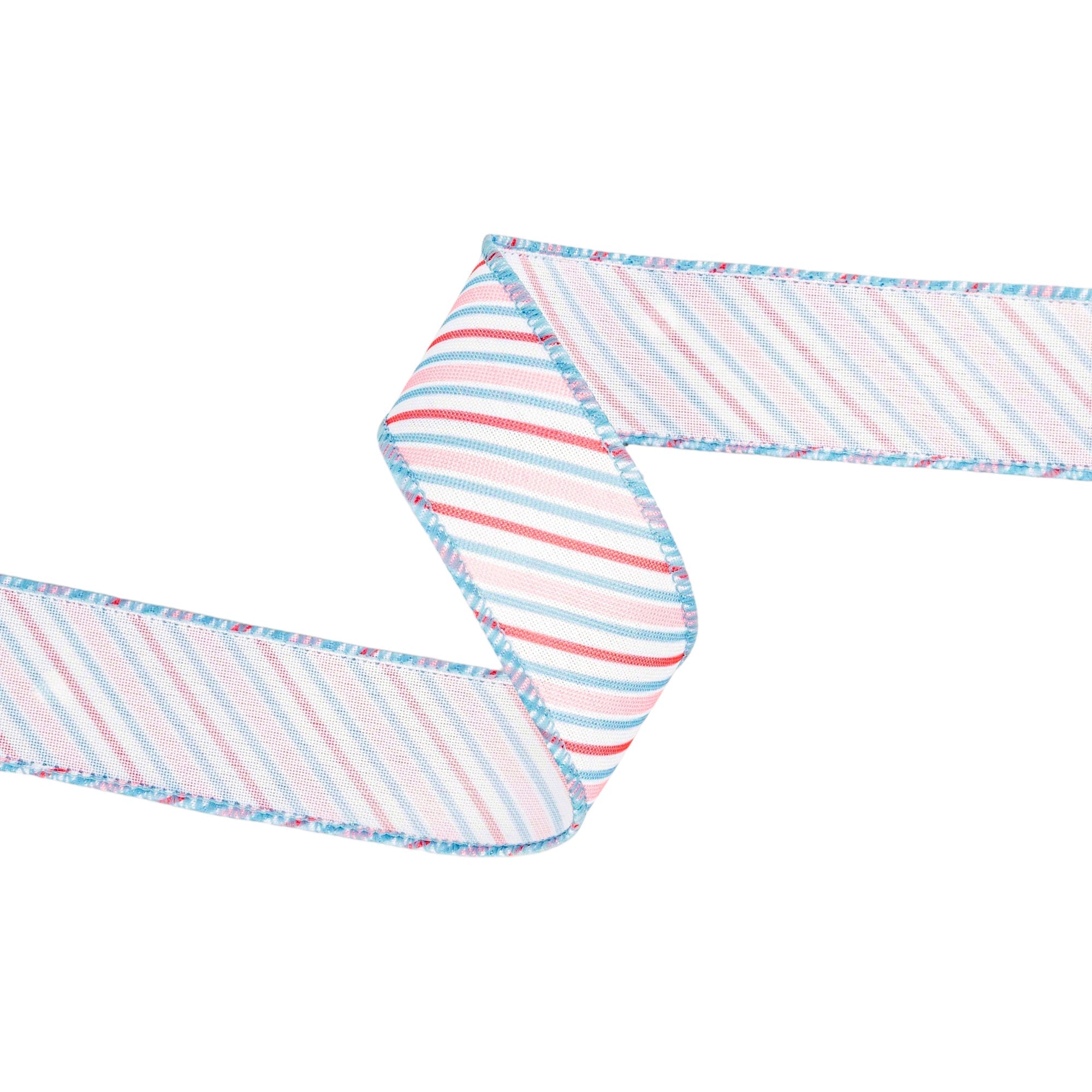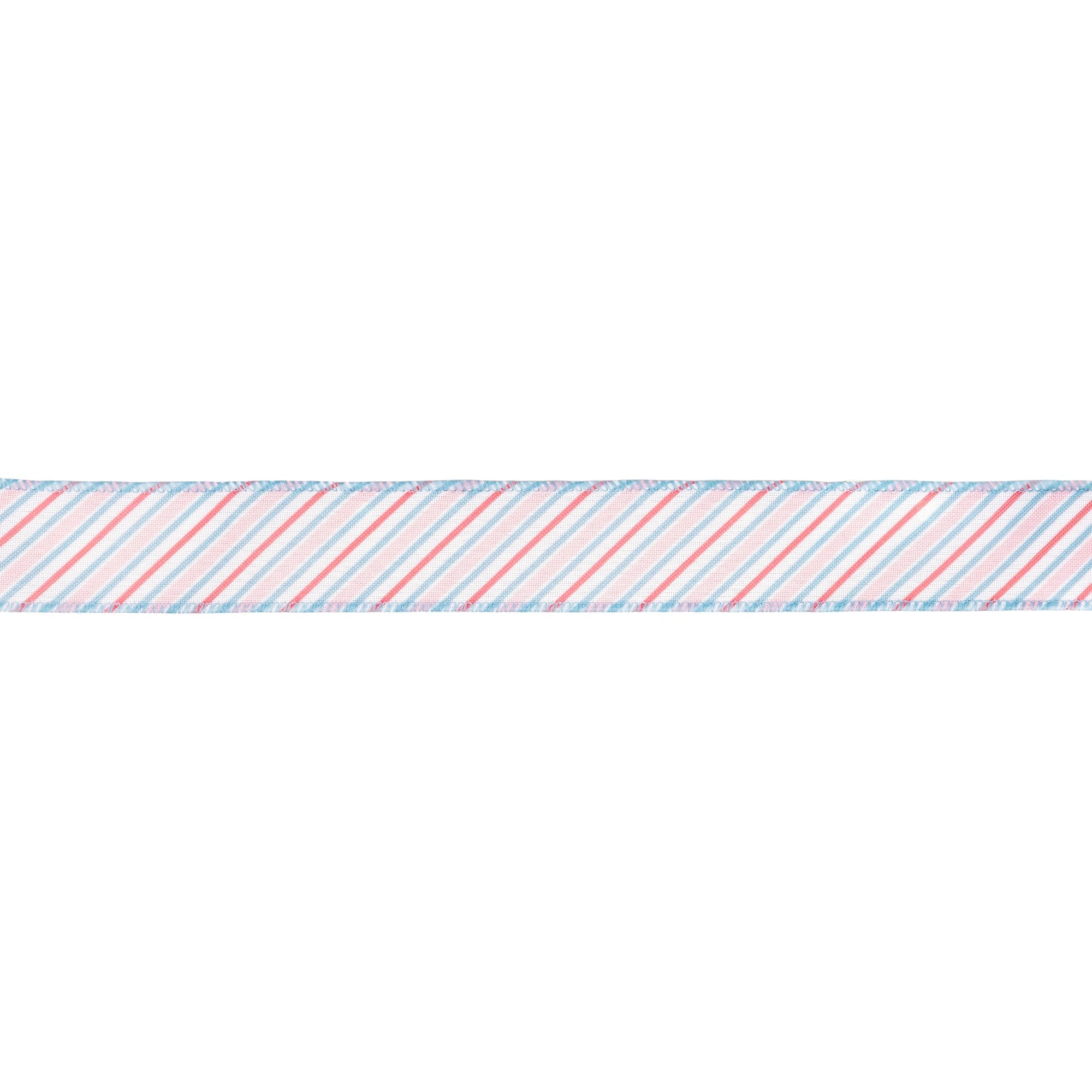 1 1/2" Wired Ribbon | Diagonal Pastel Stripes on White | 10 Yard Roll