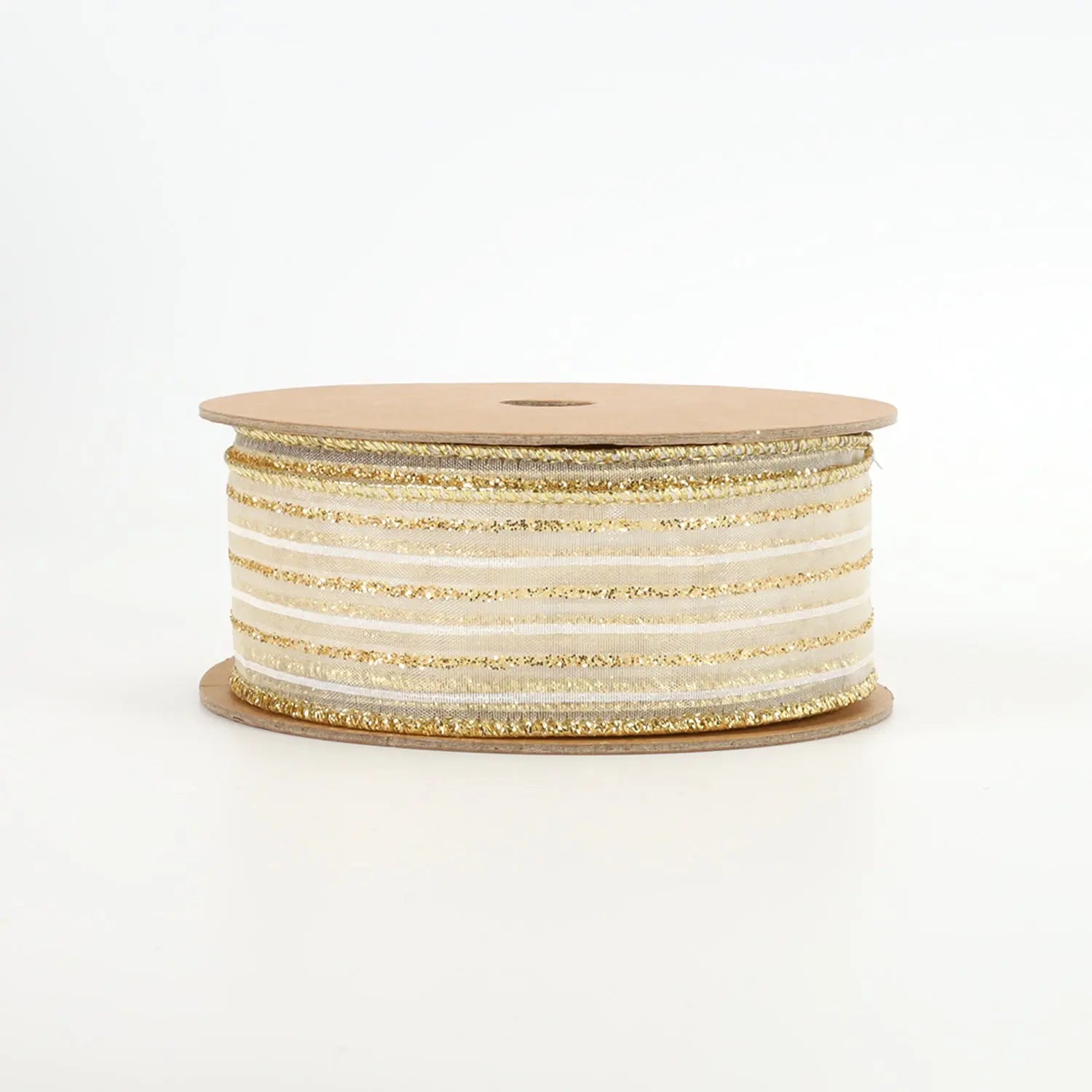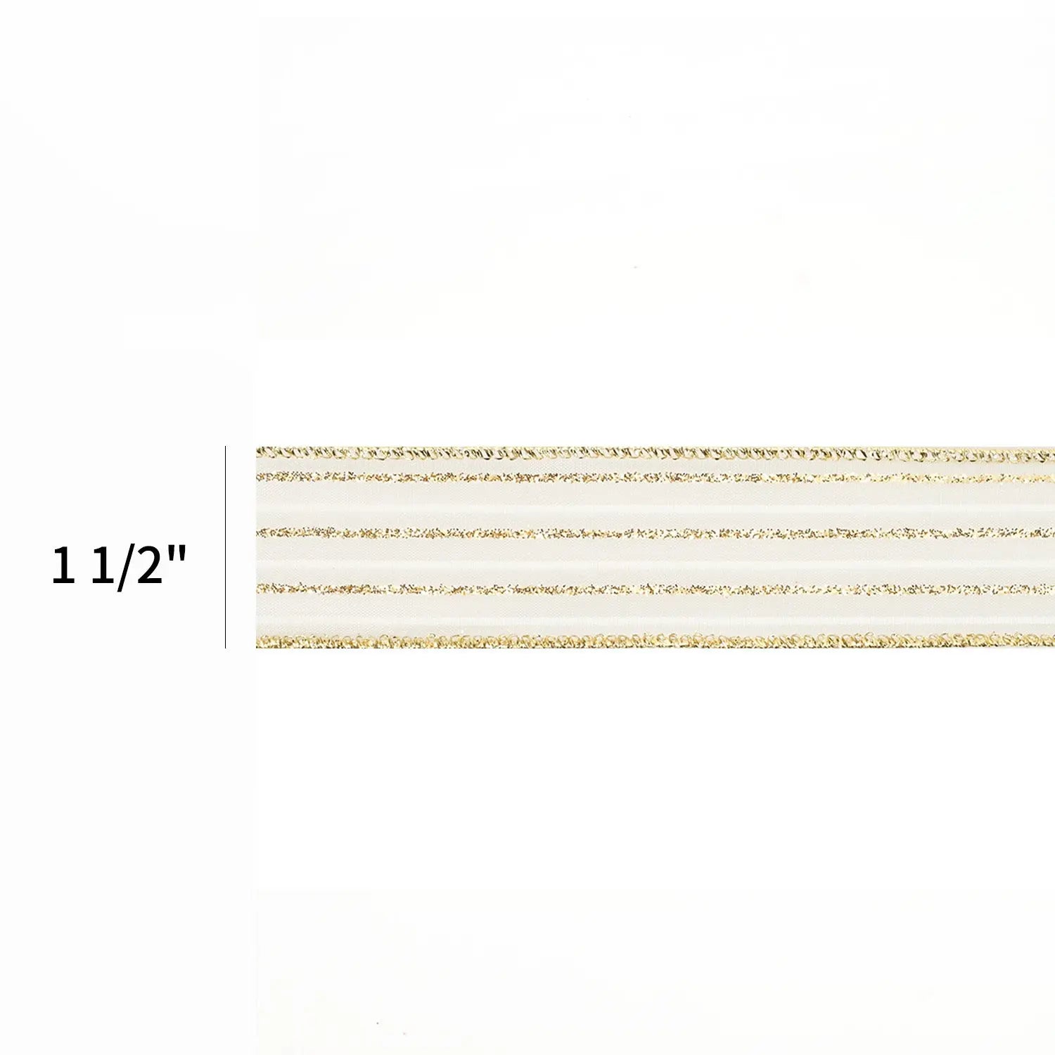 1 1/2" Wired Ribbon | "Glitter Striped" White/Gold | 10 Yard Roll