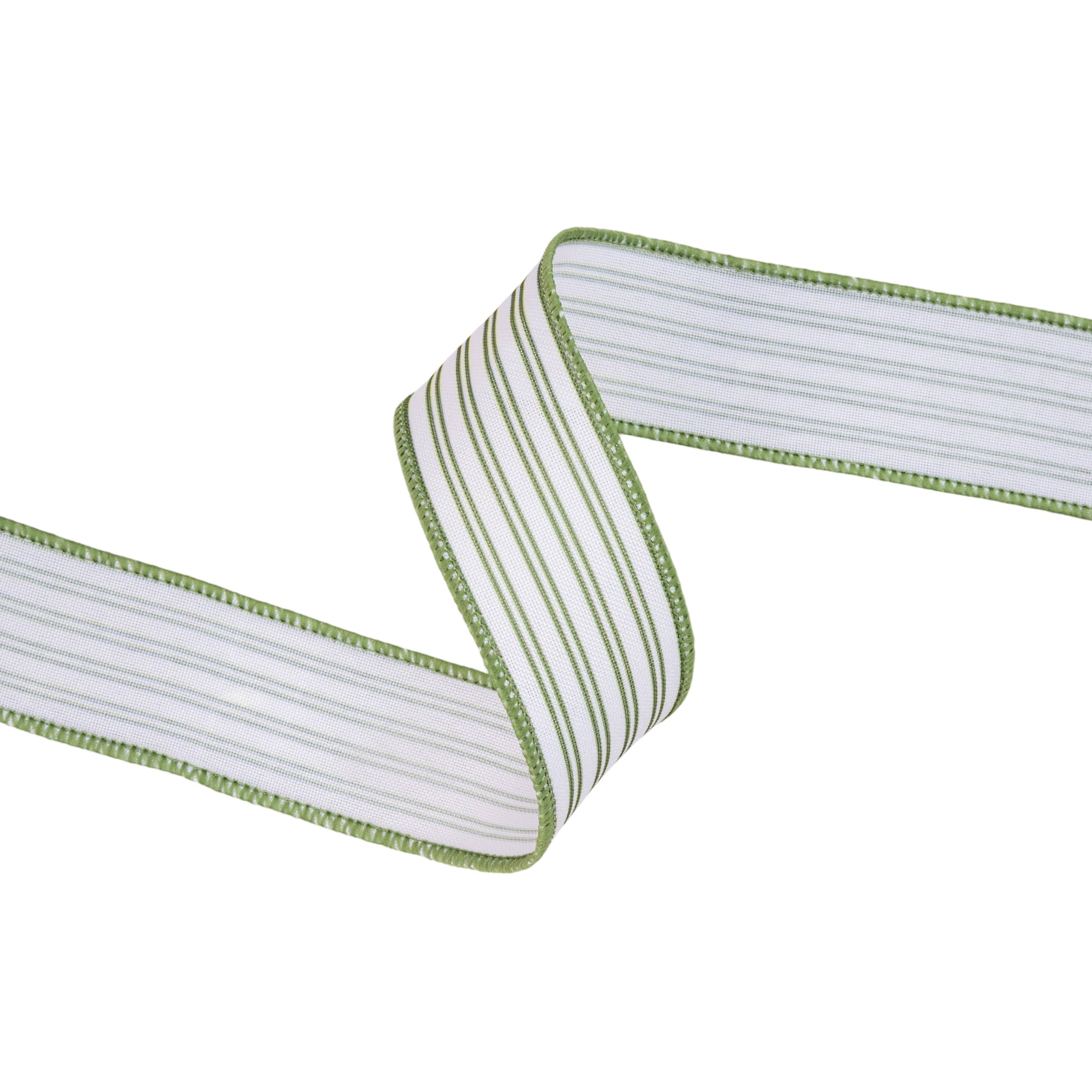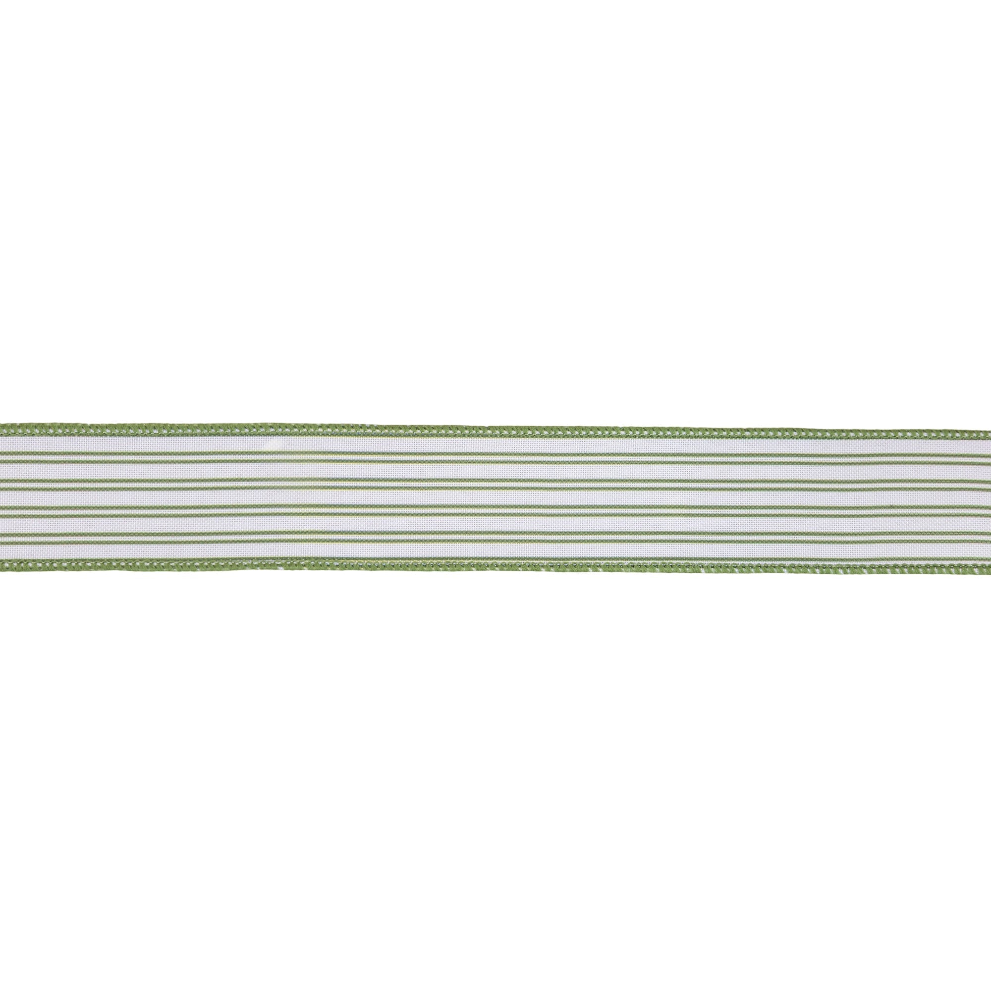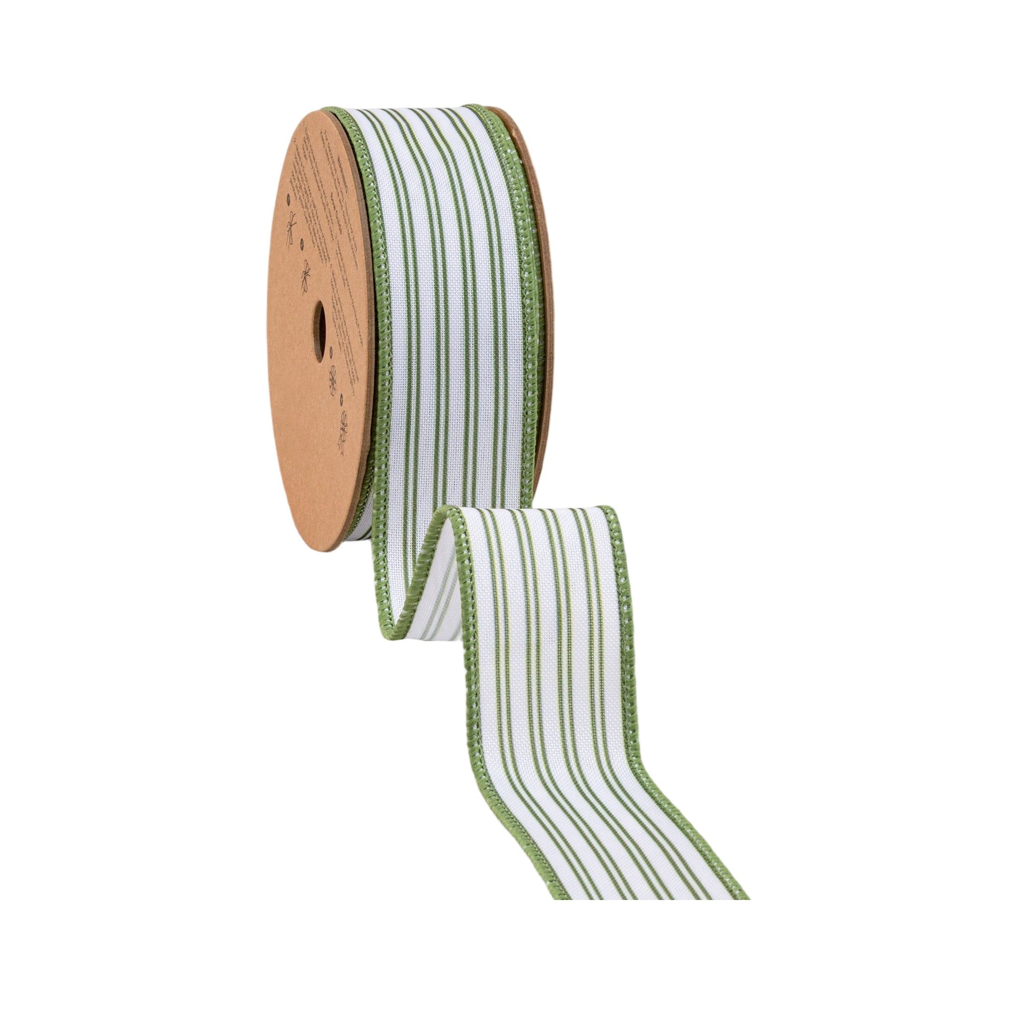 1 1/2" Wired Ribbon | Green Ticking Stripe | 10 Yard Roll