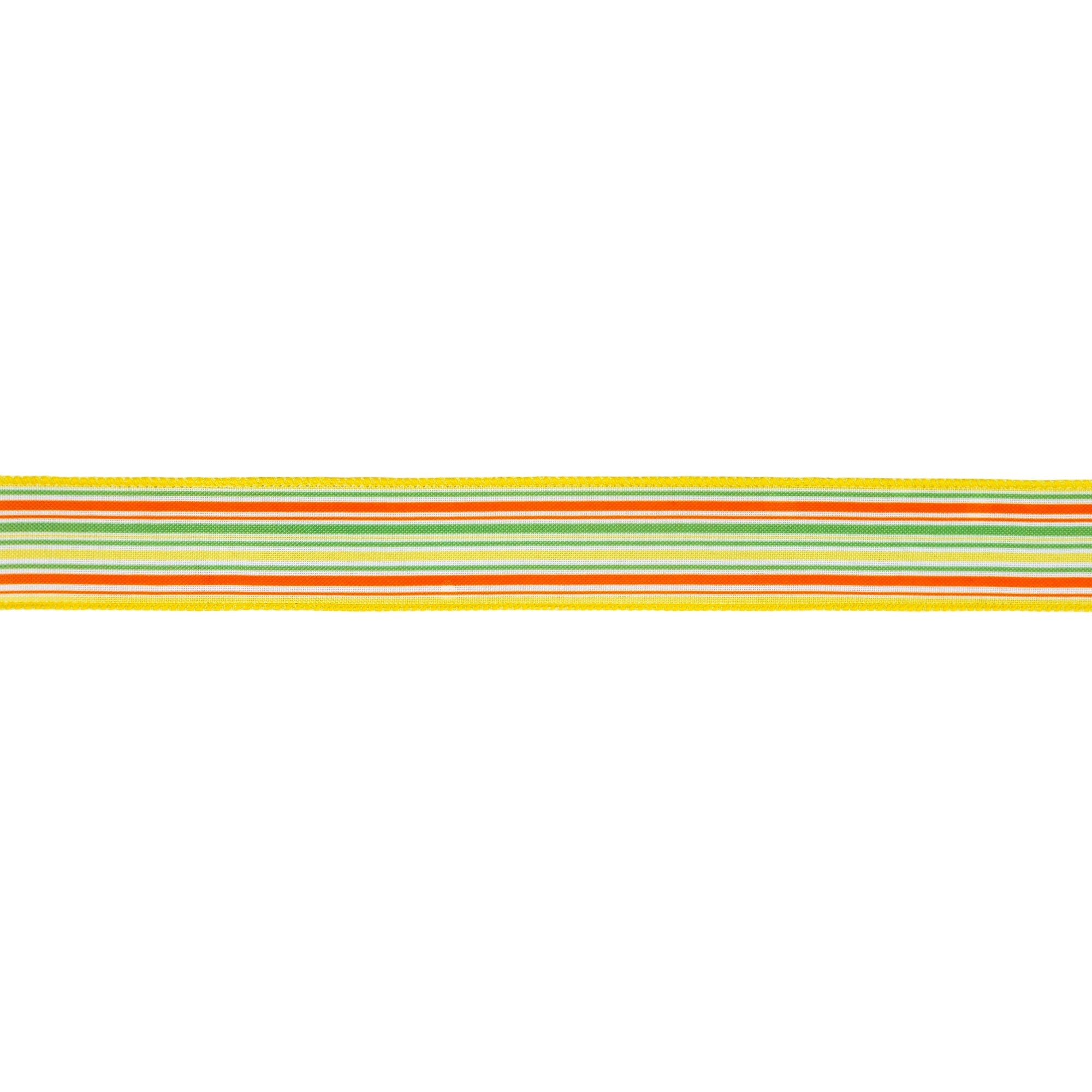 1 1/2" Wired Ribbon | Orange/Green/White on Yellow Linen | 10 Yard Roll