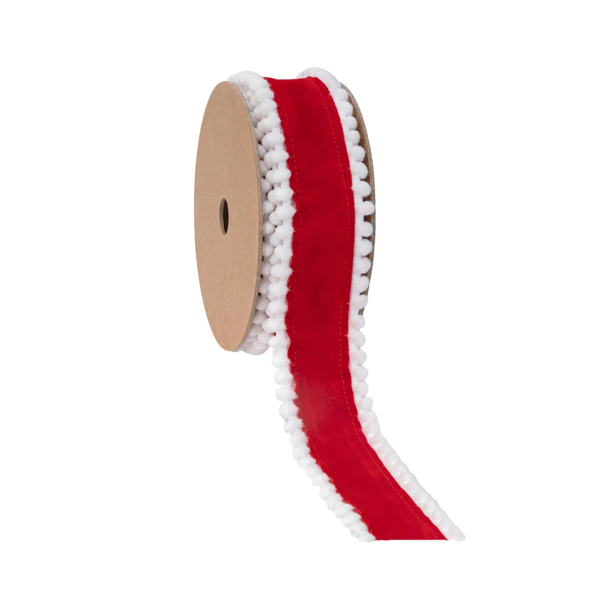 • Vibrant red ribbon accented with charming white pom-pom edges for a festive touch.