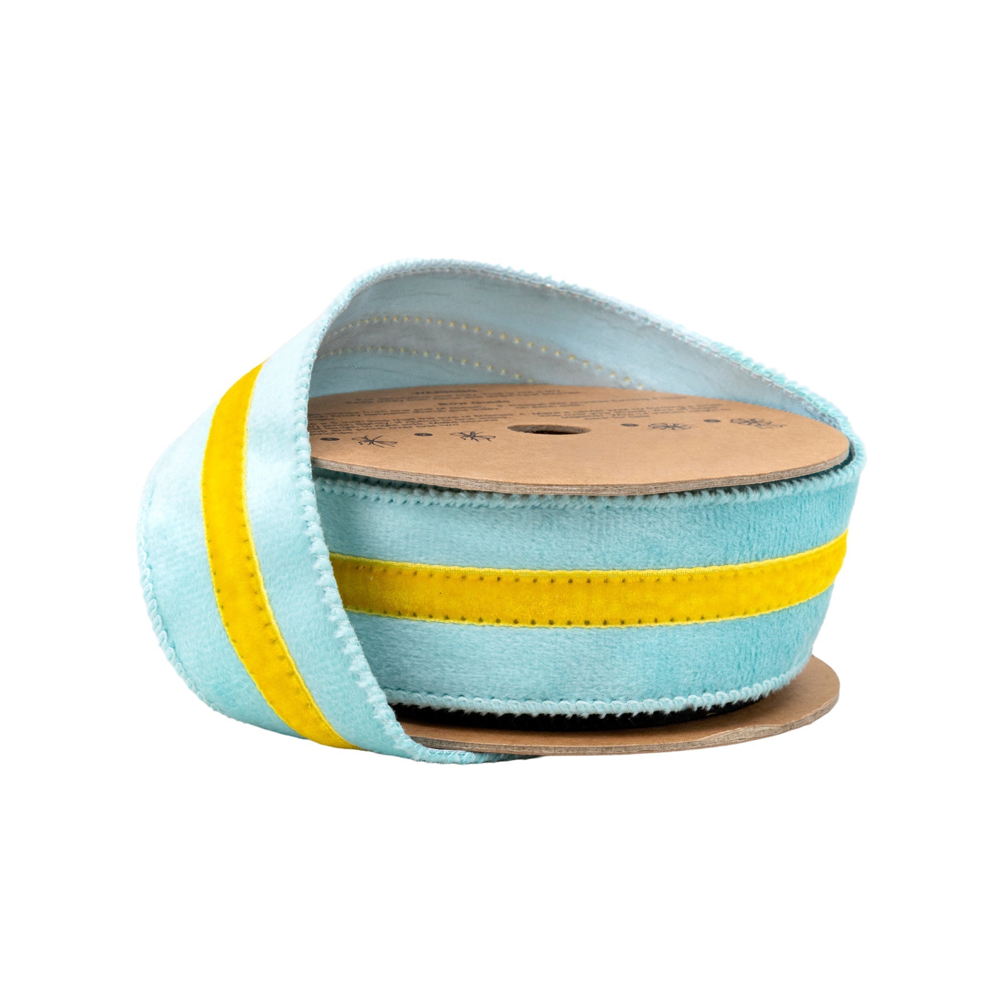 1 1/2" Wired Velvet Ribbon w/ Trim | Blue w/ Yelllow Trim | 10 Yard Roll