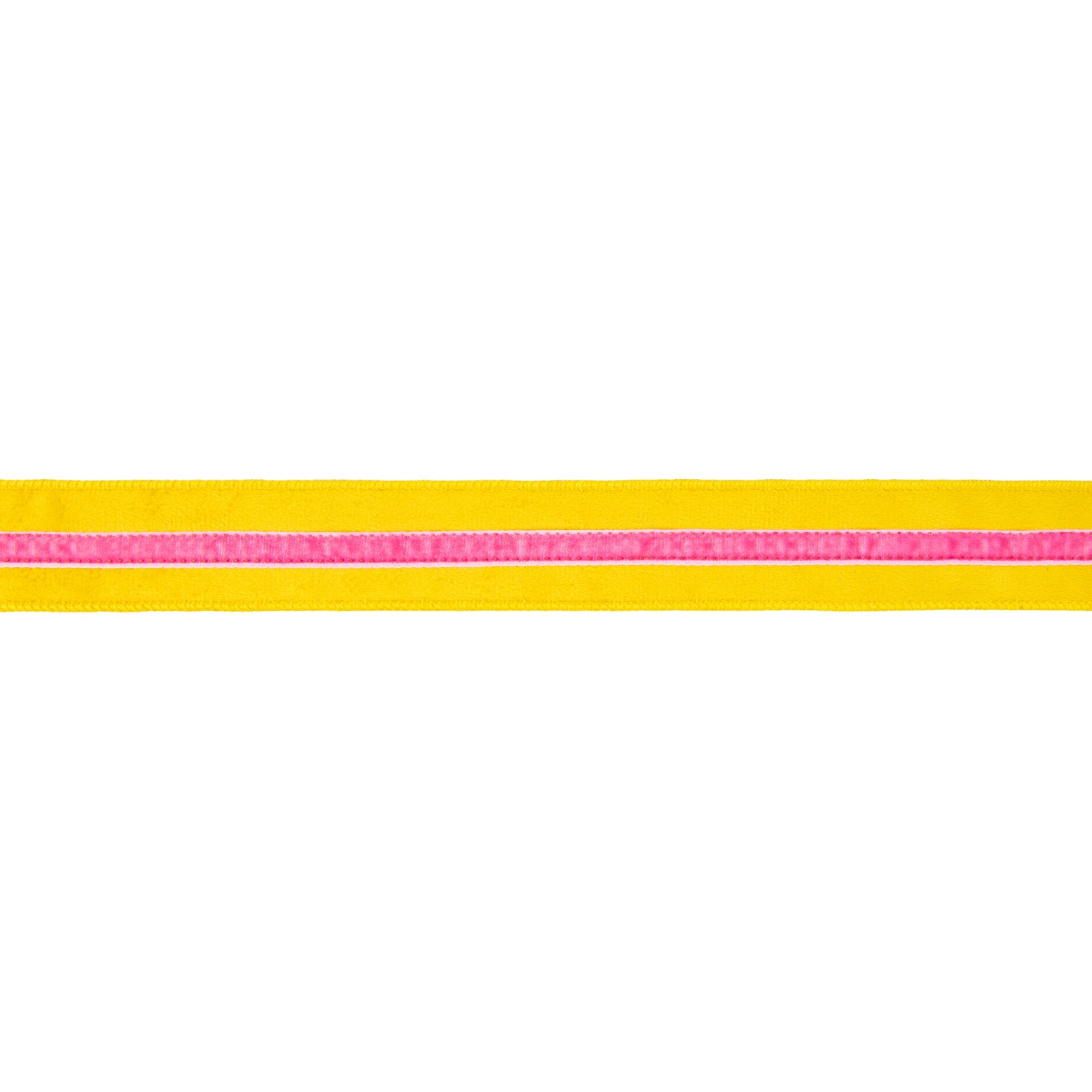 1 1/2" Wired Velvet Ribbon w/ Trim | Yellow w/ Pink Trim | 10 Yard Roll