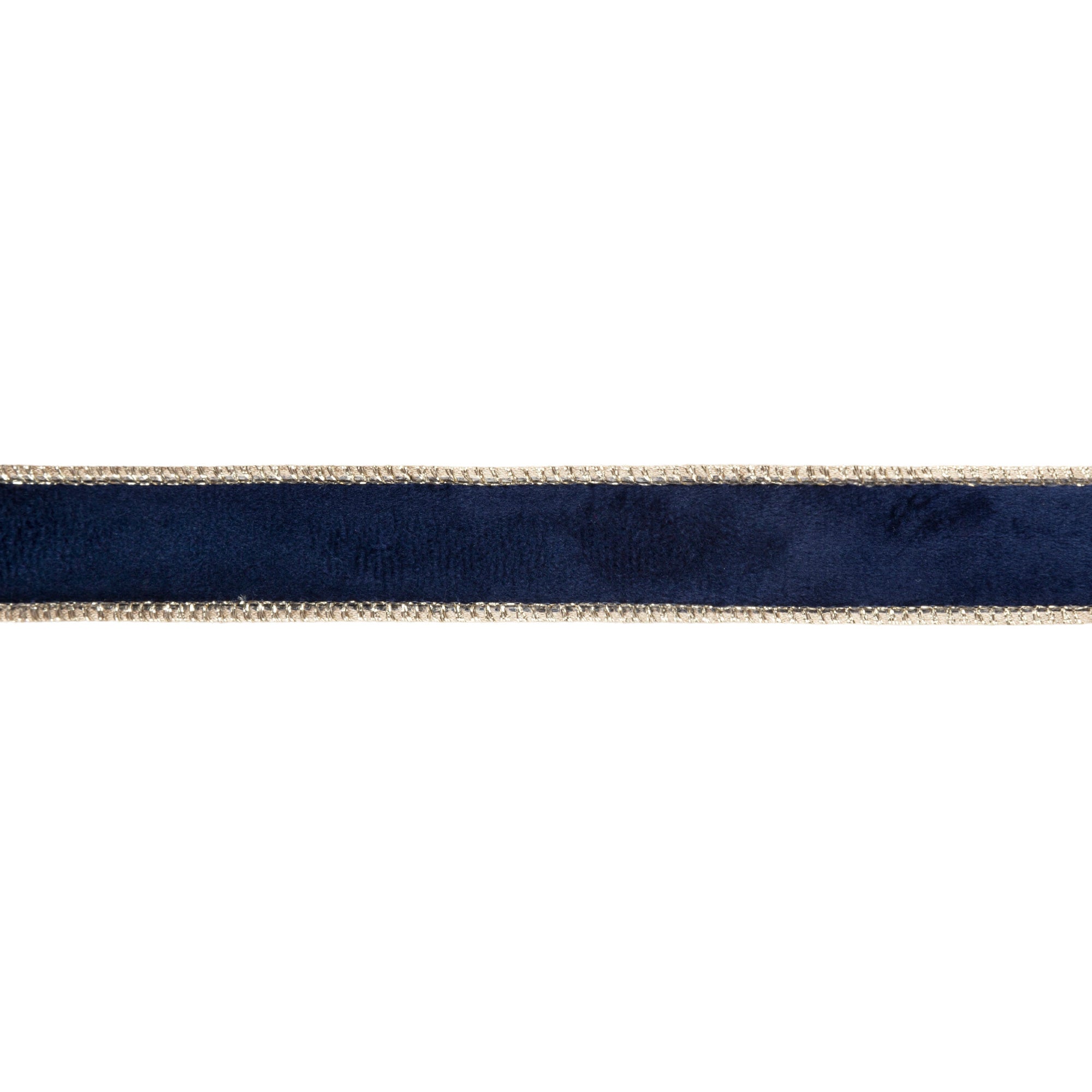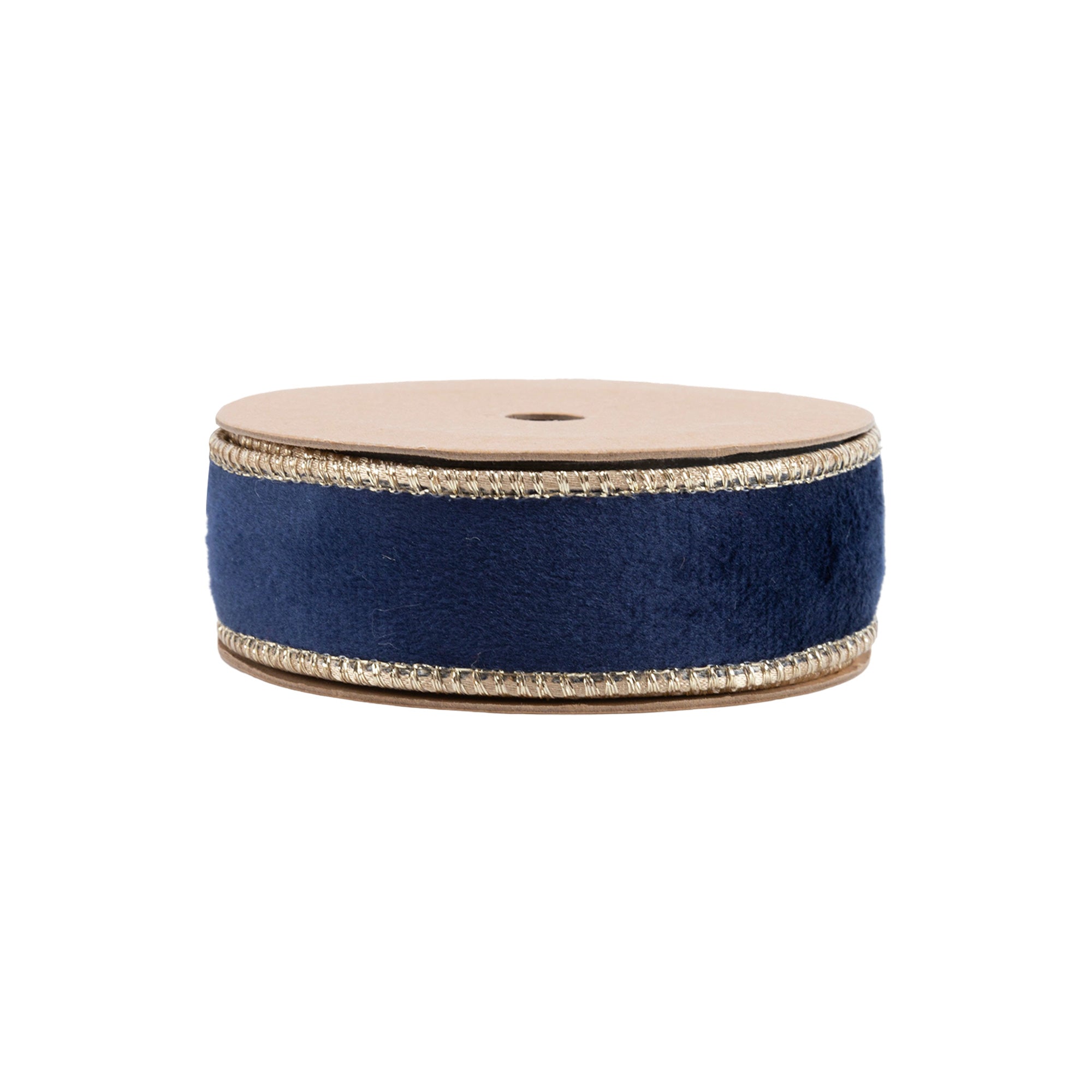 1" Reversible Classic Velvet Wired Ribbon | Navy/Gold | 10 Yard Roll