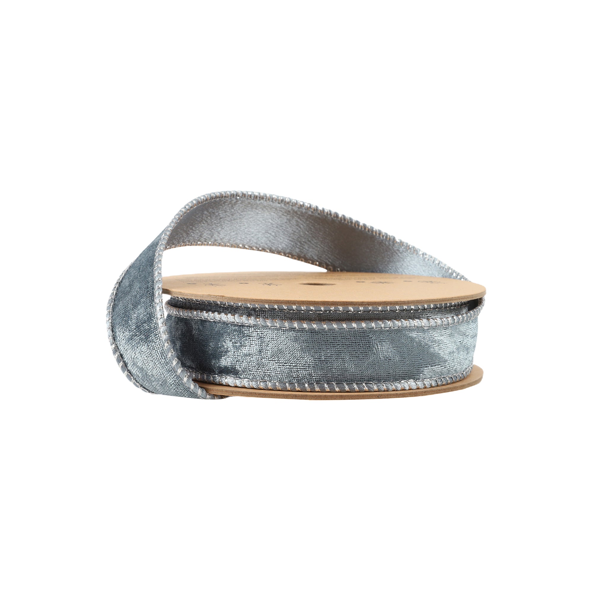1" Reversible Frosted Velvet Wired Ribbon | Blue/Blue | 10 Yard Roll