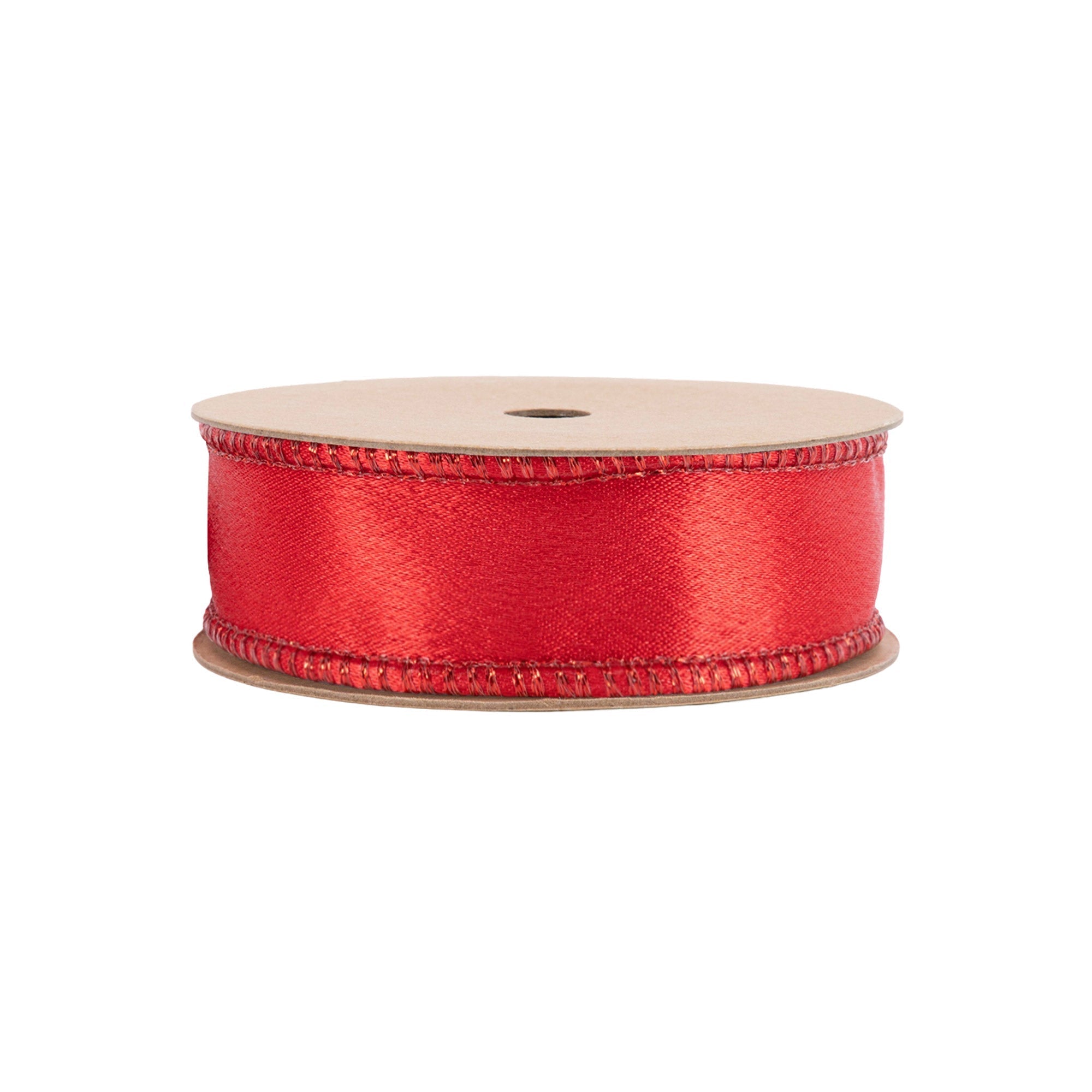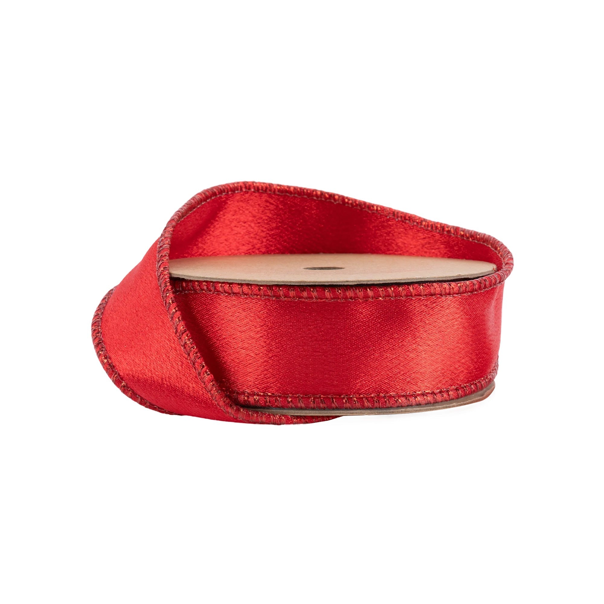 1" Wired Shimmer Satin Ribbon | Red with Red Backing | 10 Yard Roll