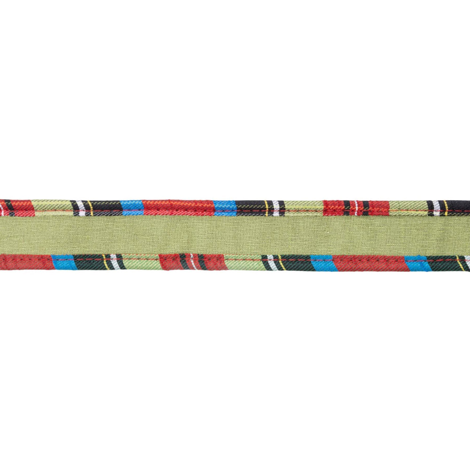 1" Wired Reversible Dupioni Ribbon | Red/Apple Green w/ Plaid Cording | 10 Yard Roll