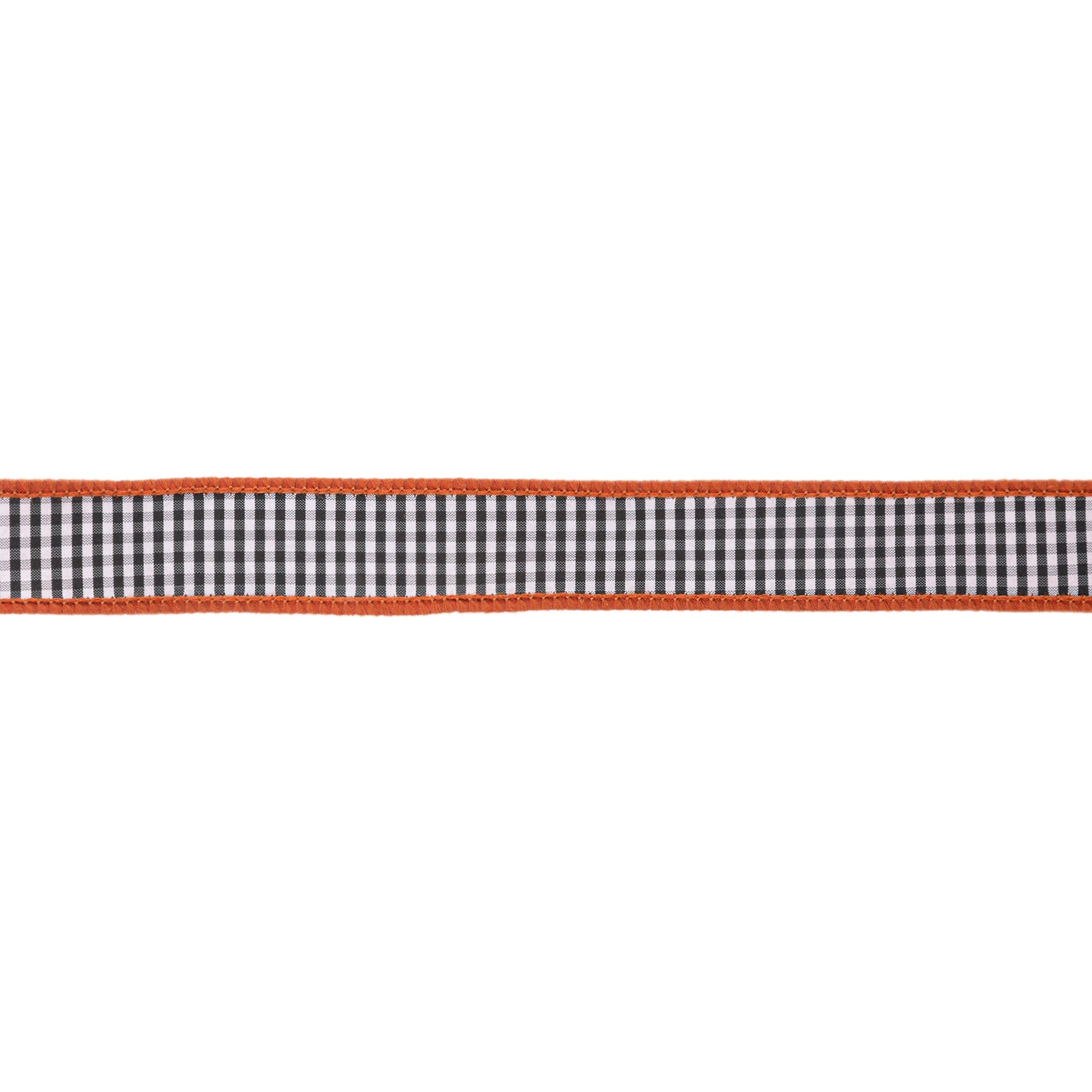 1" Wired Ribbon | Black/White Mini Check w/ Orange Backing | 10 Yard Roll