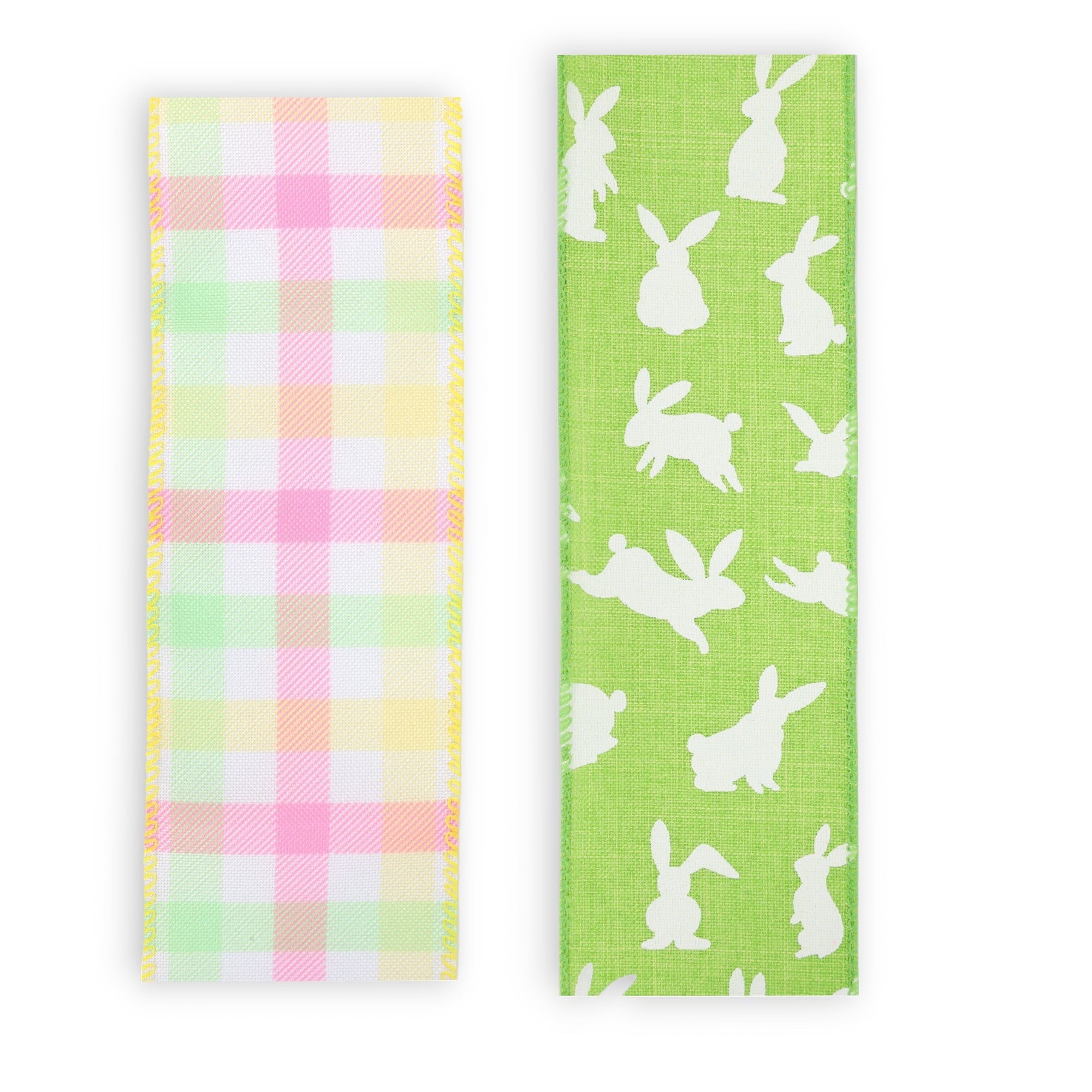 2 1/2" Bunny & Spring Plaid Wired Ribbon Bundle - 2 Rolls/20 Yards Total