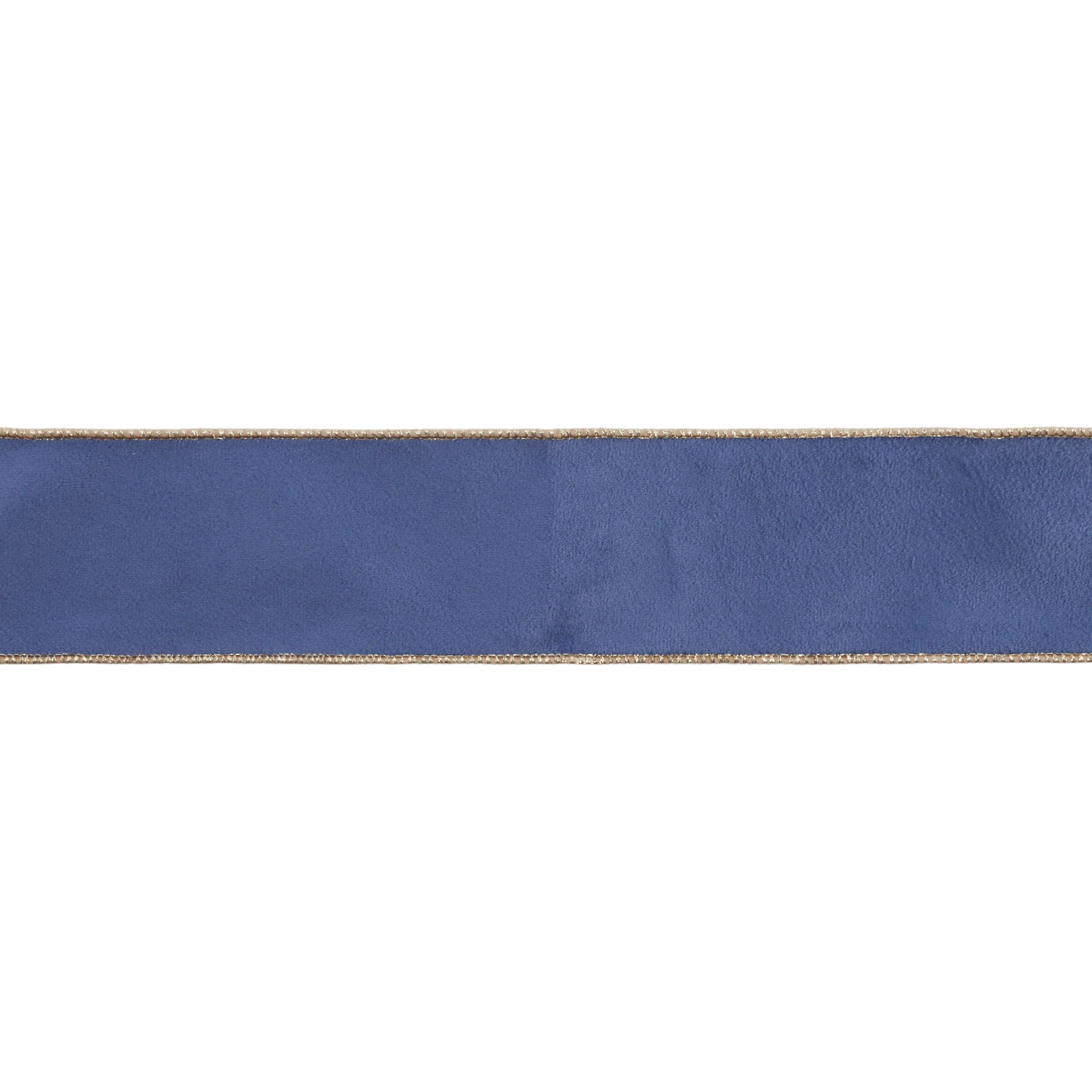 • Sophisticated 2 1/2" reversible velvet ribbon in a refined French blue and gold color combination, perfect for adding elegance to any decor.