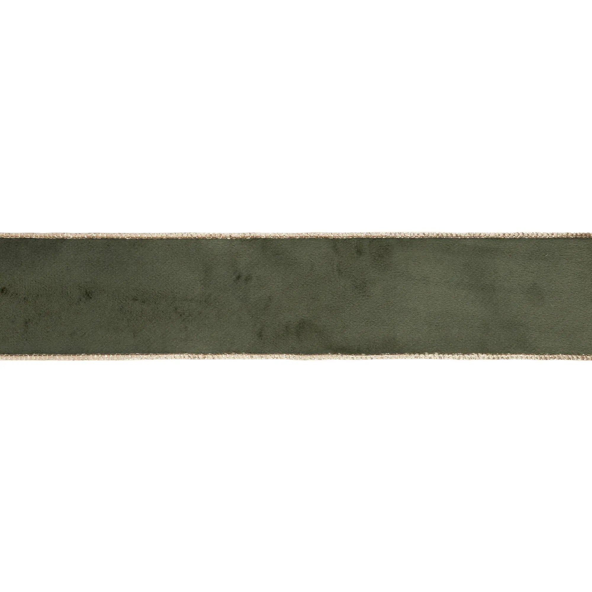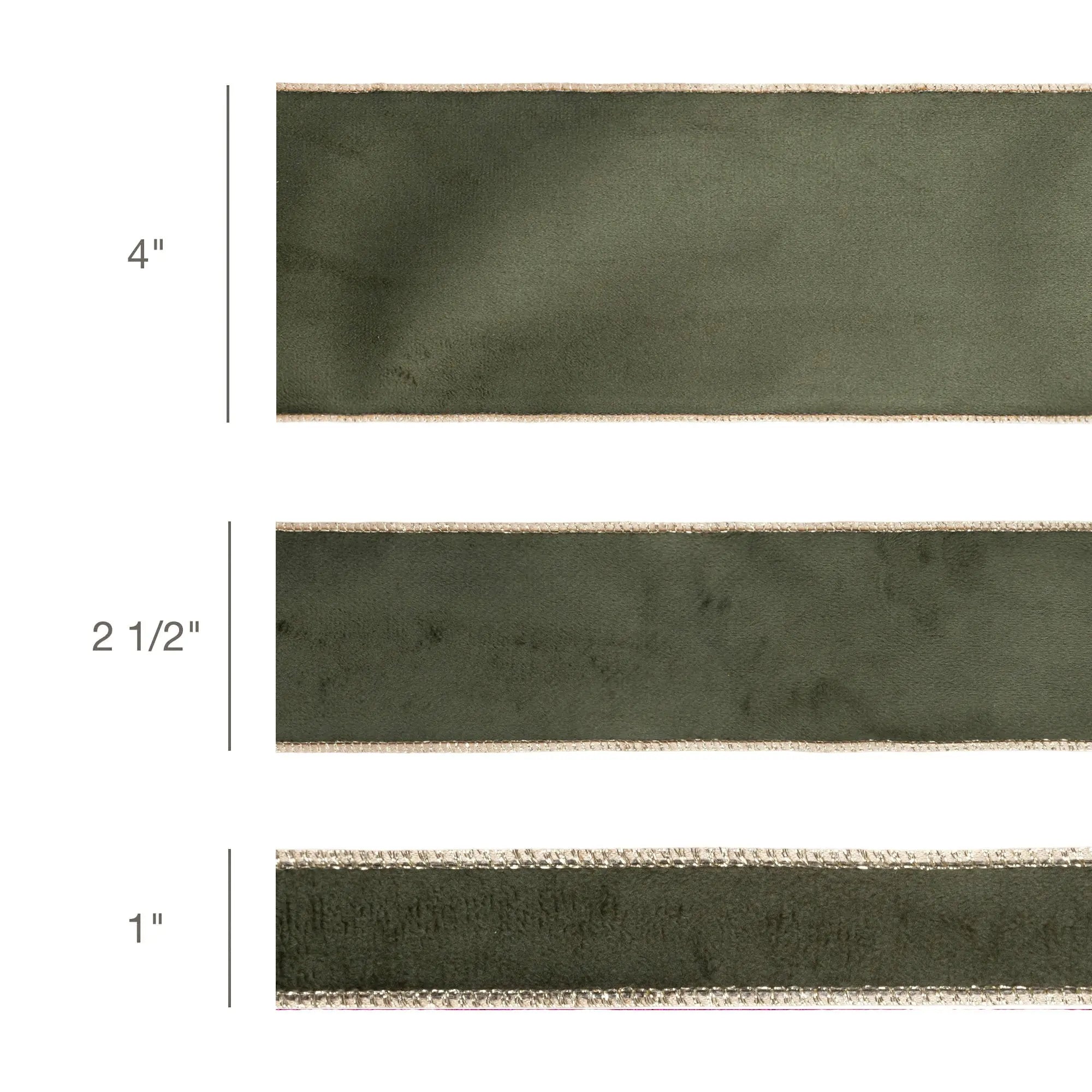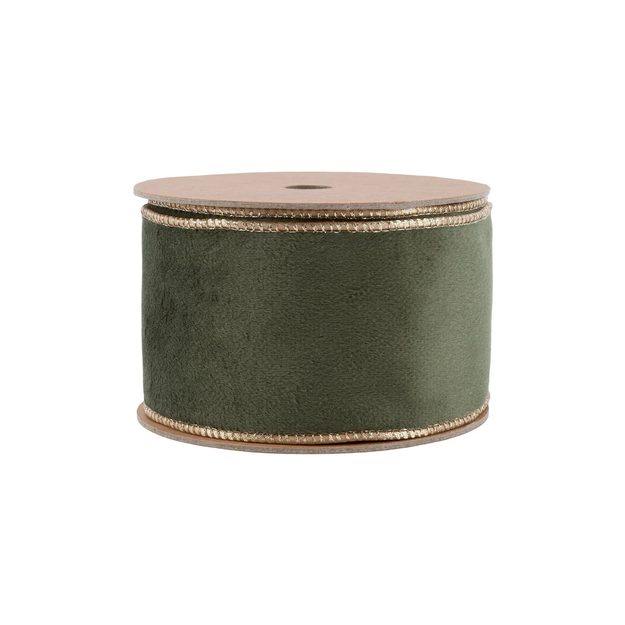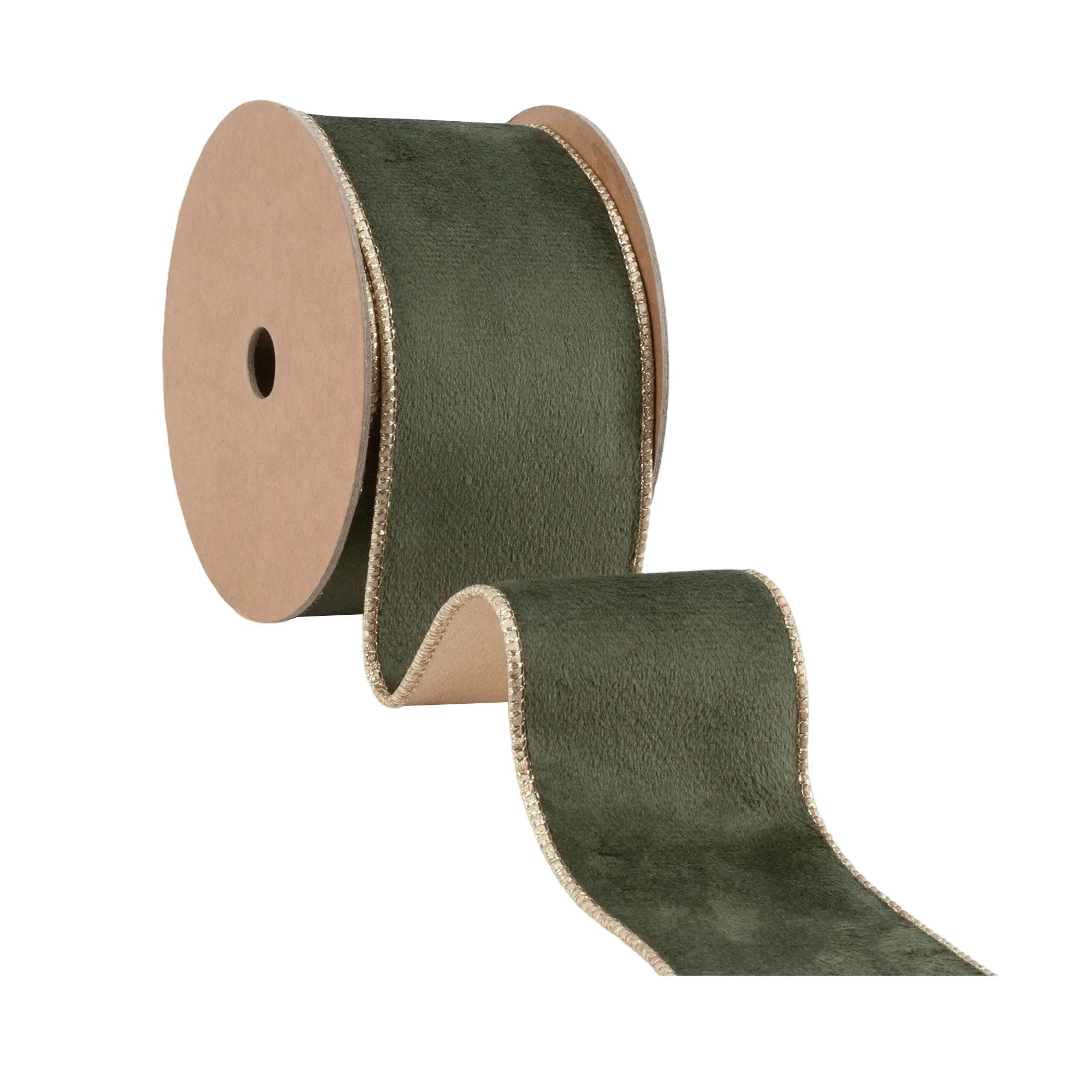 2 1/2" Reversible Classic Velvet Wired Ribbon | Moss/Gold | 10 Yard Roll