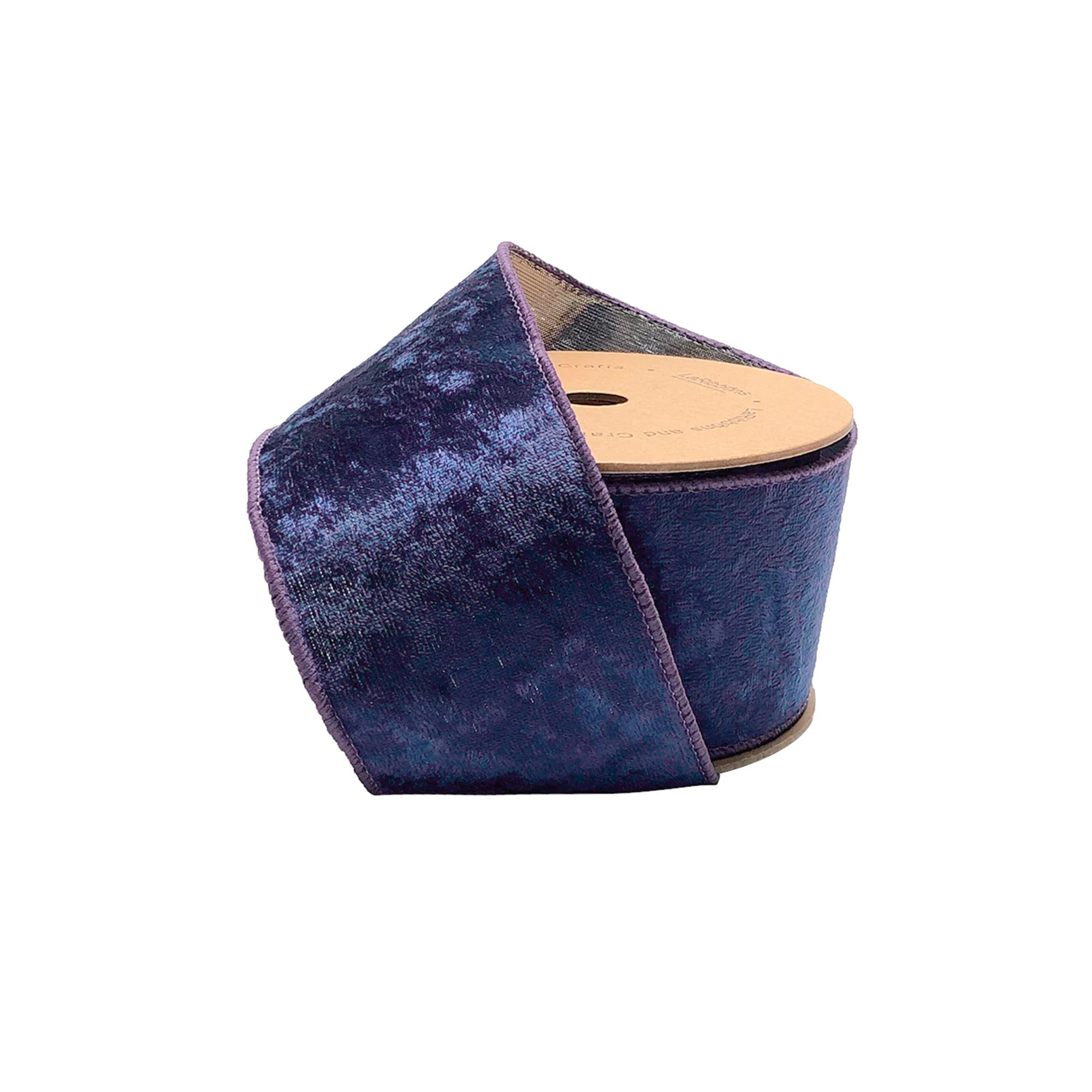 2 1/2" Reversible Velvet/Lurex Wired Ribbon | Dk Purple/Silver | 10 Yard Roll