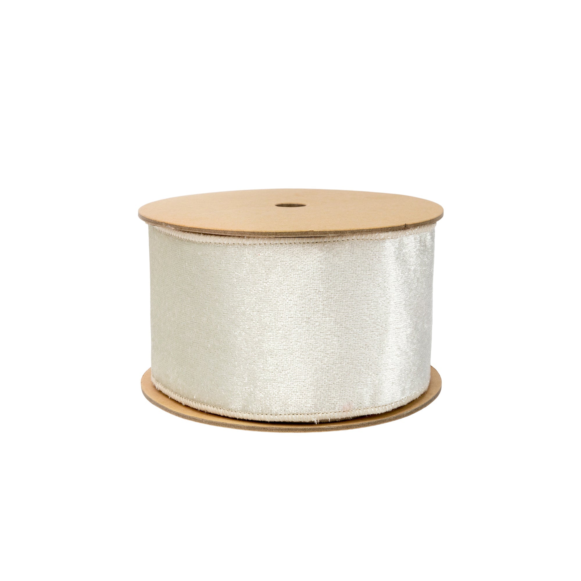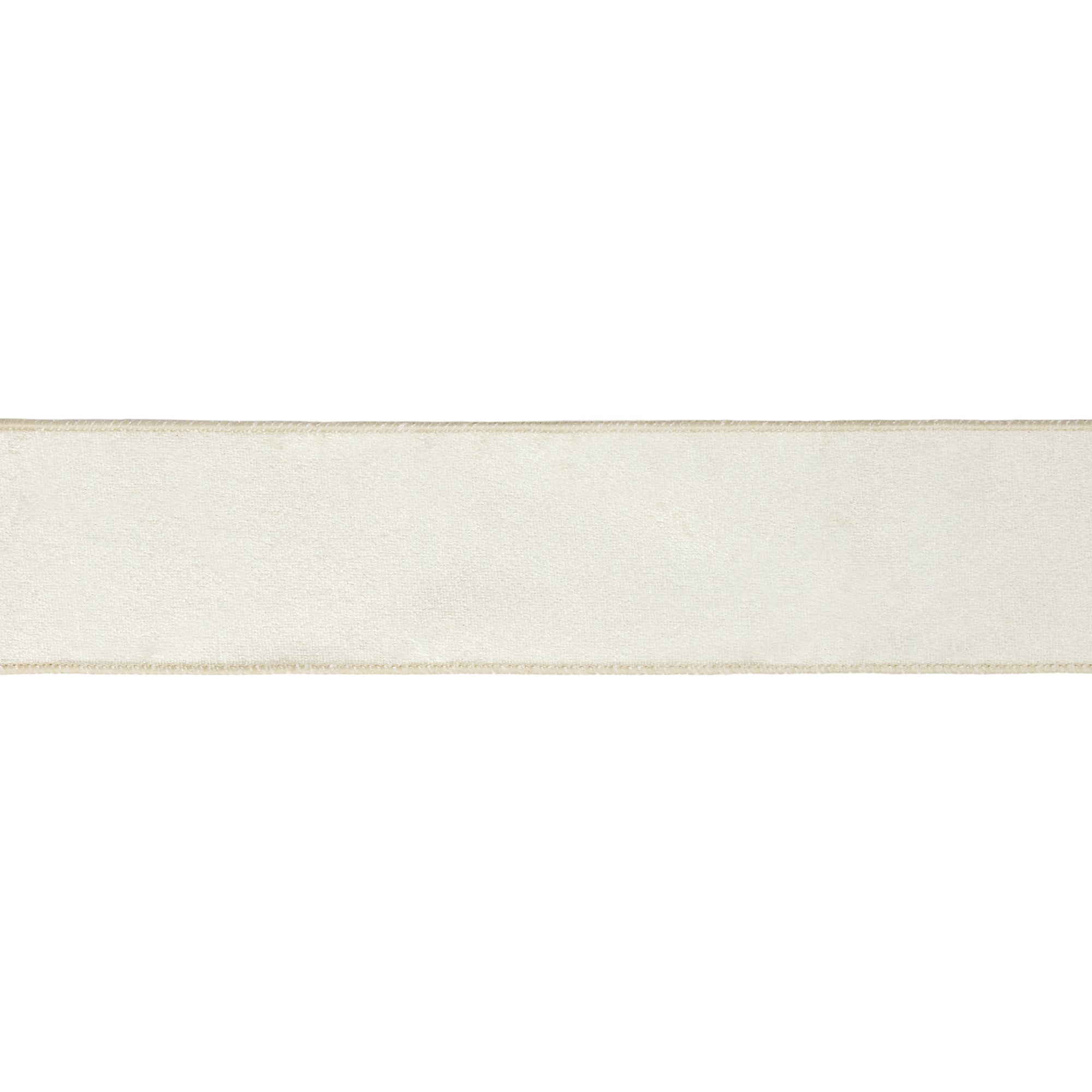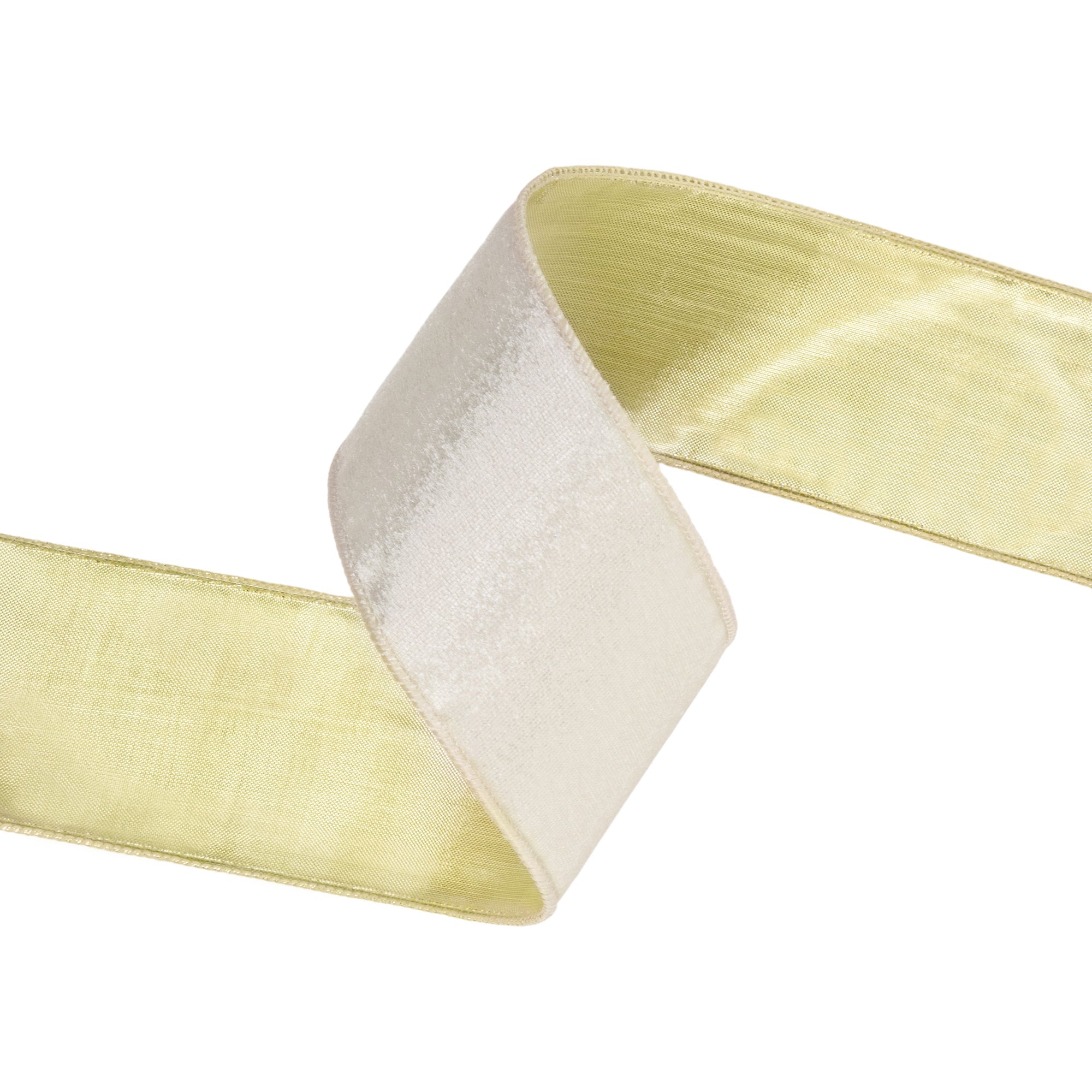 2 1/2" Reversible Velvet/Lurex Wired Ribbon | Ivory/Gold | 10 Yard Roll