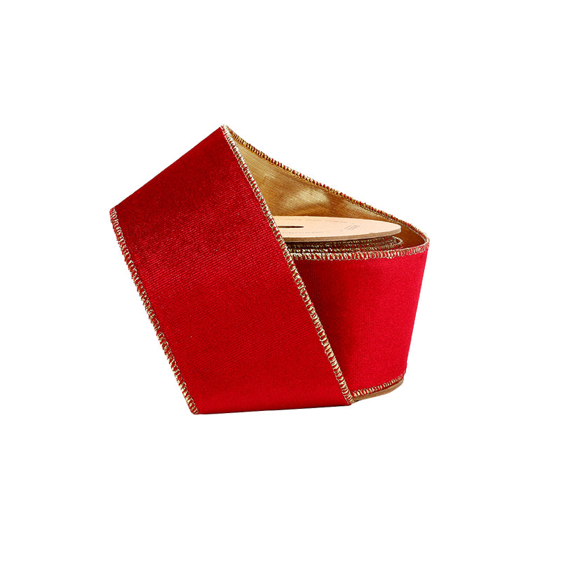 • Luxe Velvet and Lurex Combo: Elevate your creations with our 2 1/2" Reversible Velvet/Lurex Wired Ribbon. Featuring sumptuous scarlet velvet on one side and glimmering gold lurex on the other, this ribbon offers a dynamic blend of textures and colors.