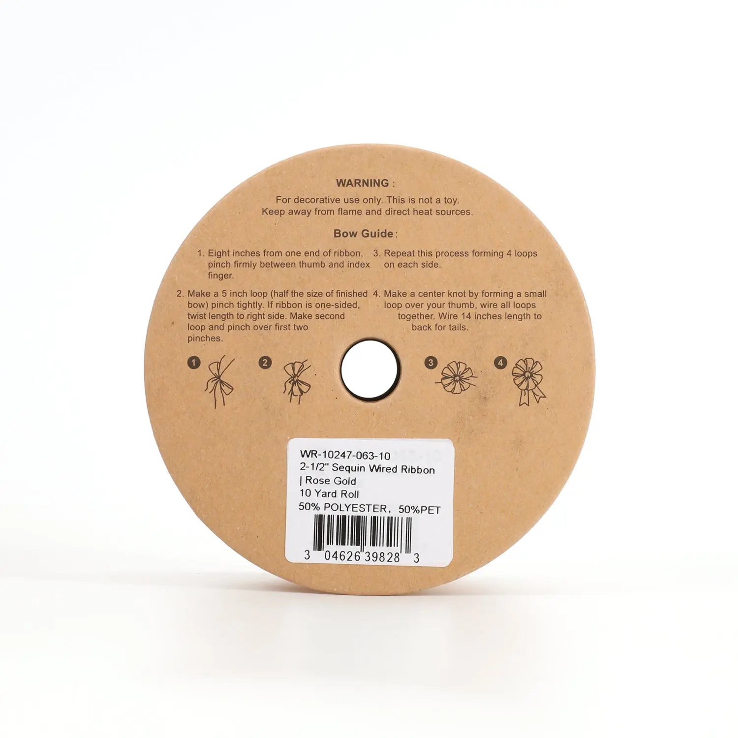 2 1/2" Sequin Wired Ribbon | Rose Gold | 10 Yard Roll