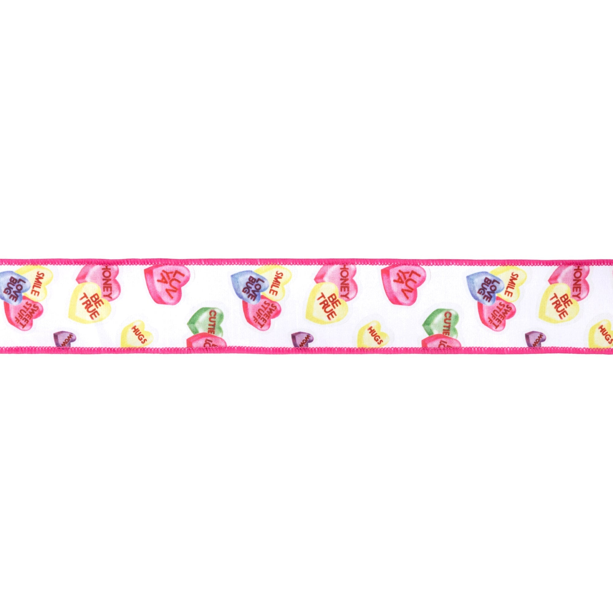 2 1/2" Wired Dupioni Ribbon | Candy Hearts w/ Pink Backing | 10 Yard Roll