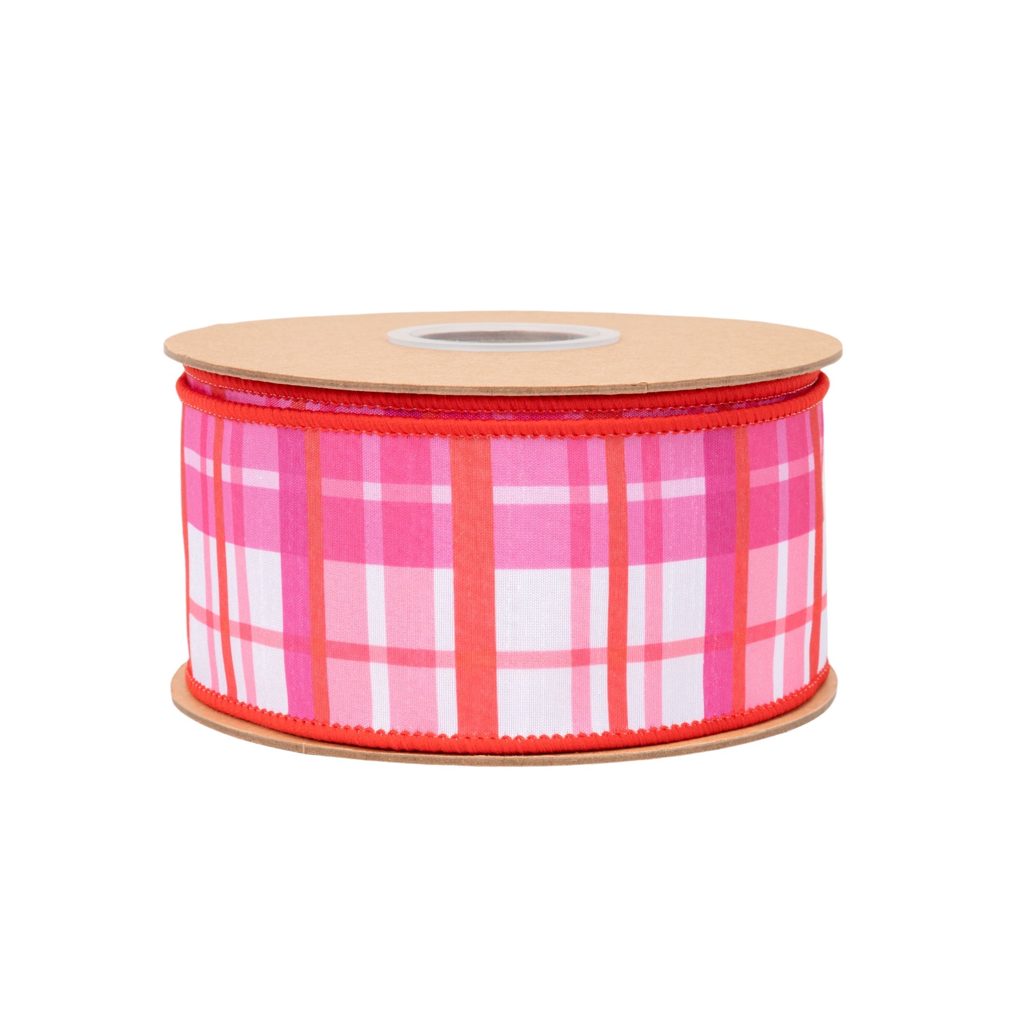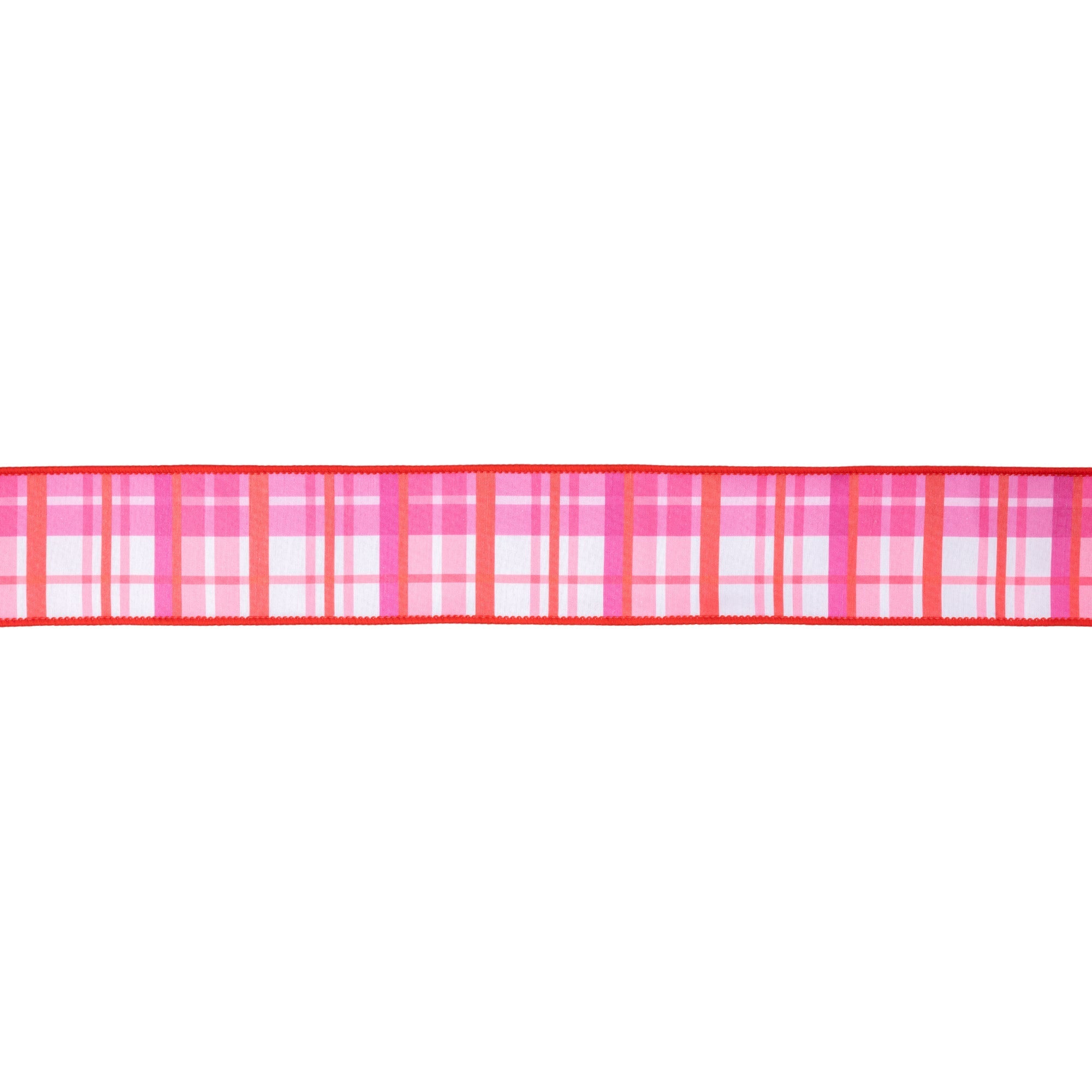2 1/2" Wired Dupioni Ribbon | Red and Pink Plaid w/ Red Backing | 10 Yard Roll