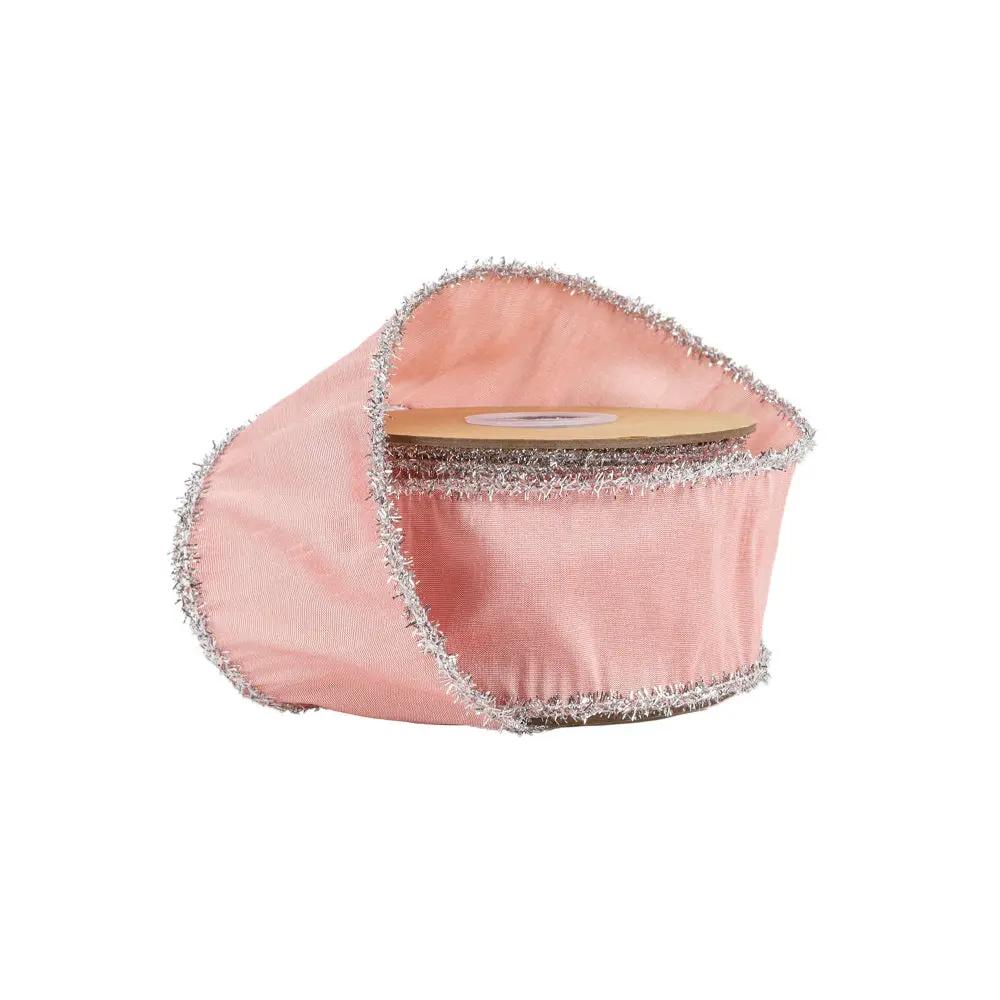 2 1/2" Wired Dupioni Ribbon w / Lurex Trim | Pink/Silver | 10 Yard Roll
