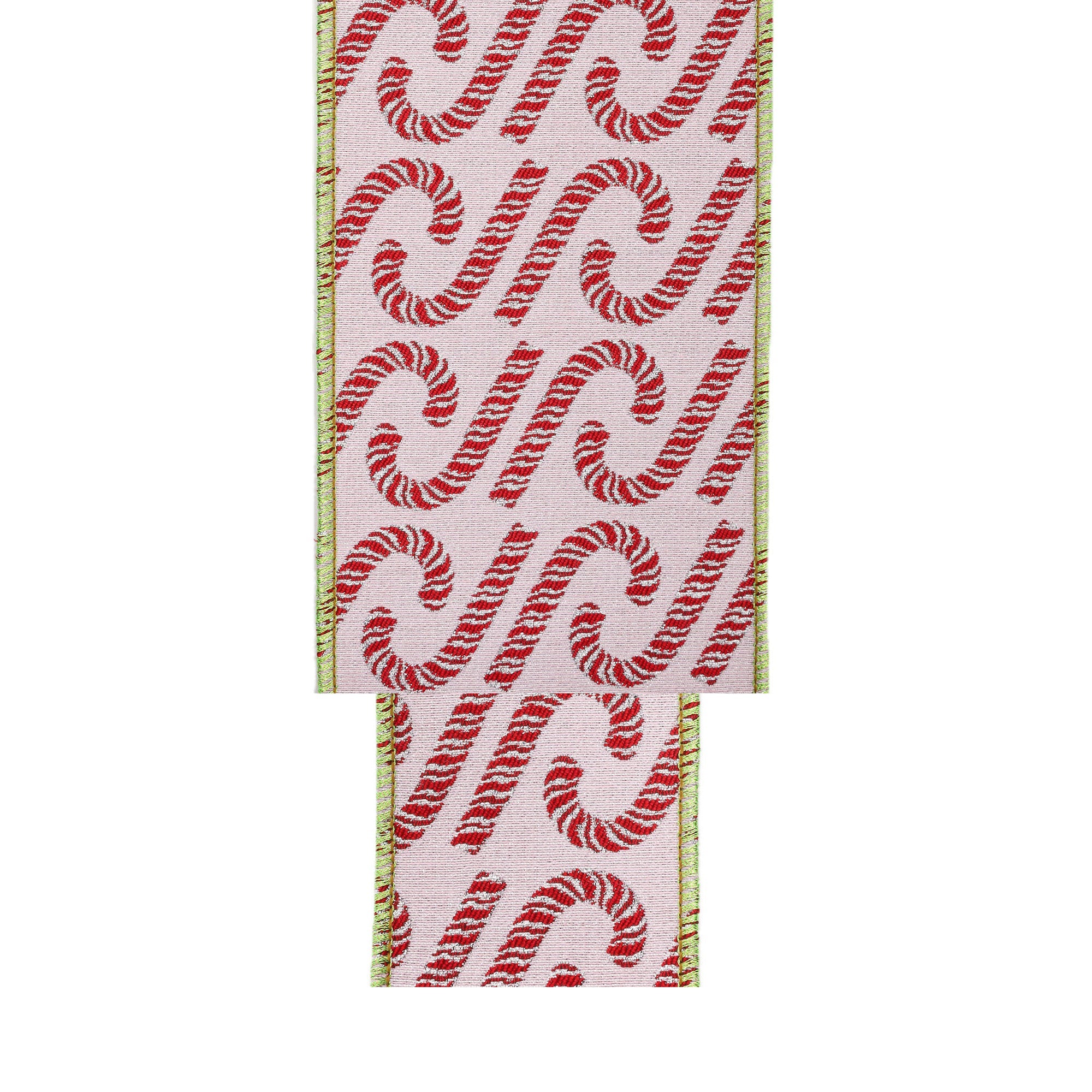• Vibrant Design: Featuring a candy cane pattern on a soft pink background, our 2 1/2" Wired Jacquard Ribbon exudes festive charm, adding a playful touch to any project or gift wrapping.