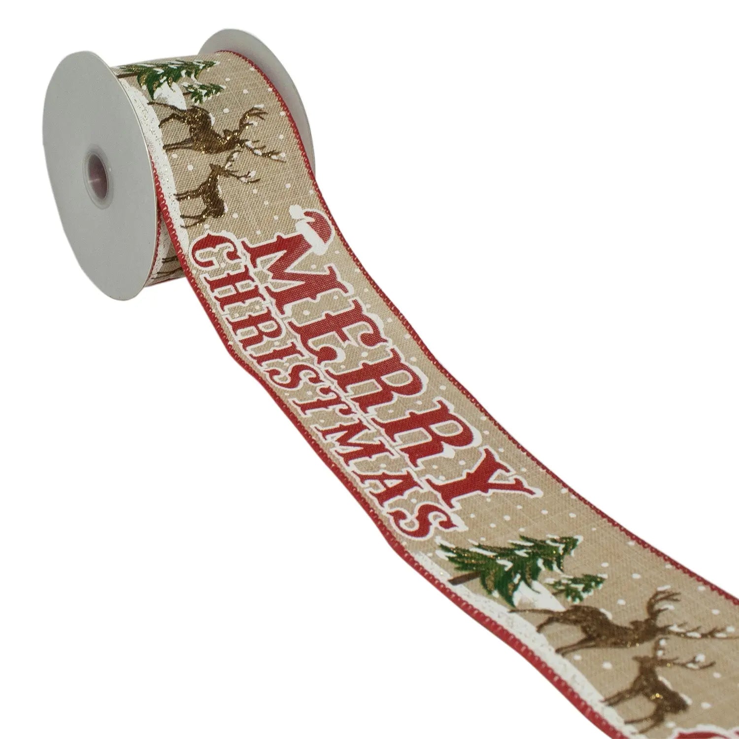 • Festive Greetings: Make your holiday decor stand out with our 2 1/2" Wired Ribbon featuring the bold and vibrant "Merry Christmas" lettering in red against a natural ribbon backdrop. Each roll comes with 10 yards of ribbon, providing ample material to accommodate various decorating needs and creative endeavors.