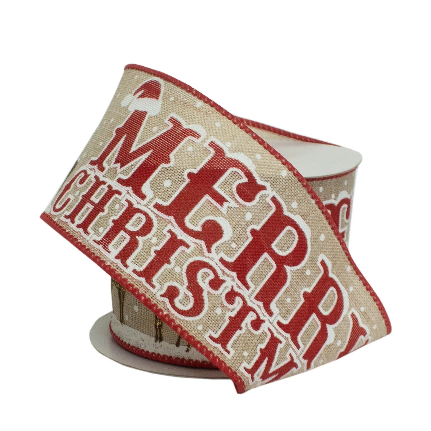 2 1/2" Wired Ribbon | "Merry Christmas" Natural/Red | 10 Yard Roll