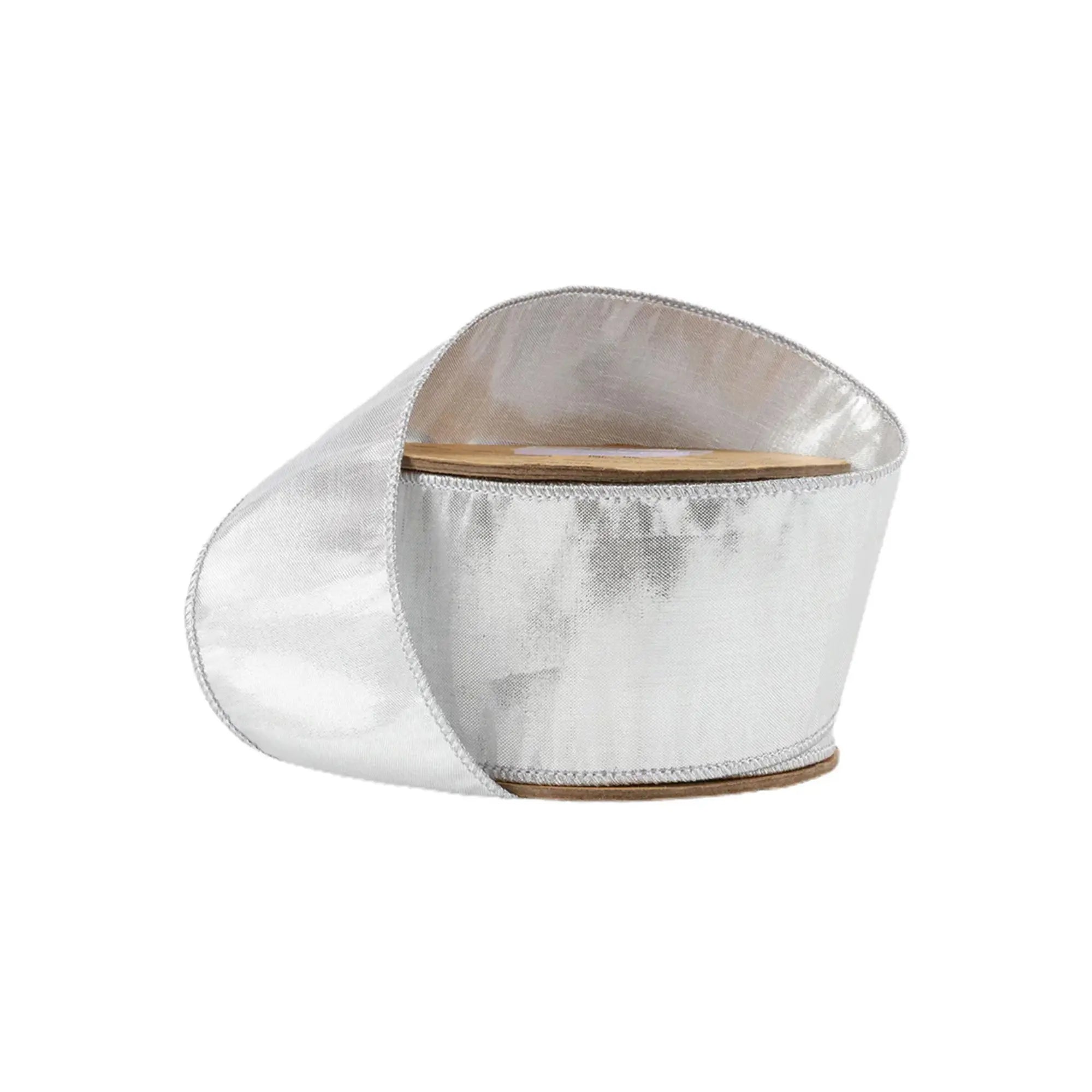 2 1/2" Wired Metallic Dupioni Ribbon | Bright Silver | 10 Yard Roll