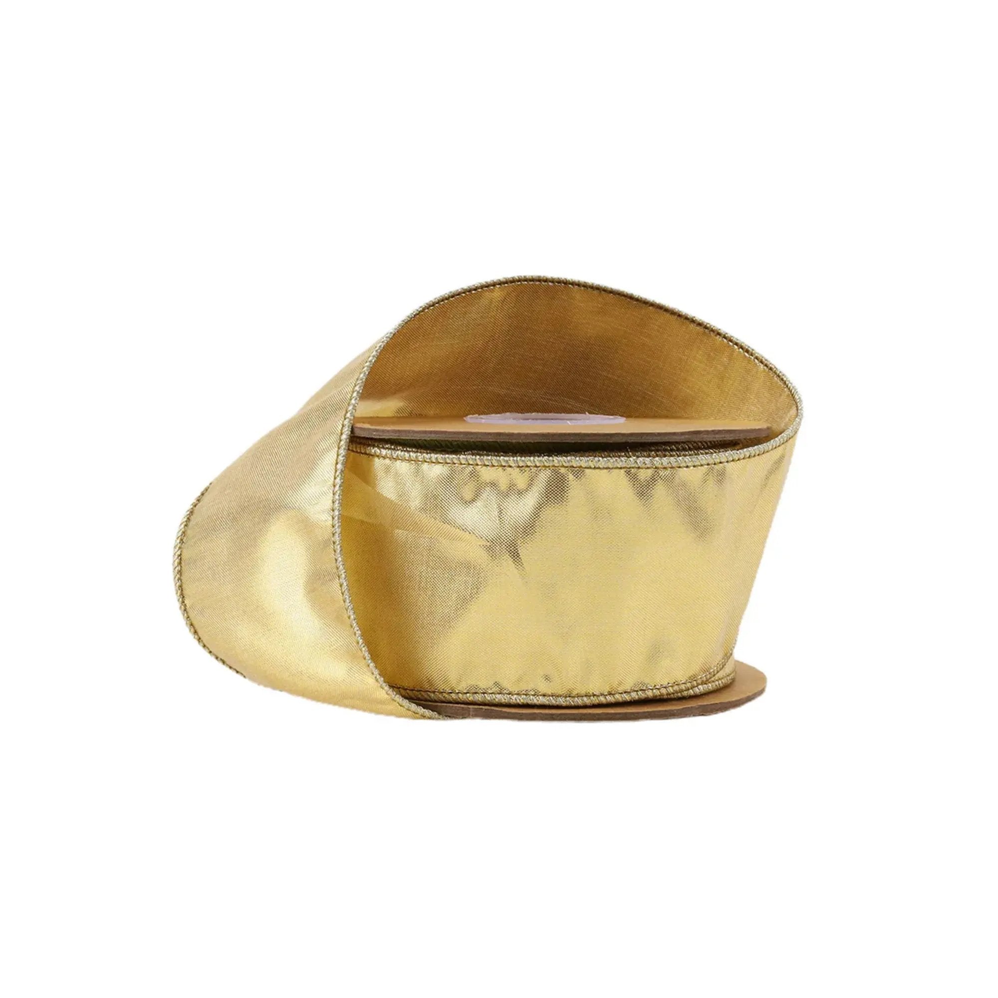 2 1/2" Wired Metallic Dupioni Ribbon | Gold | 10 Yard Roll