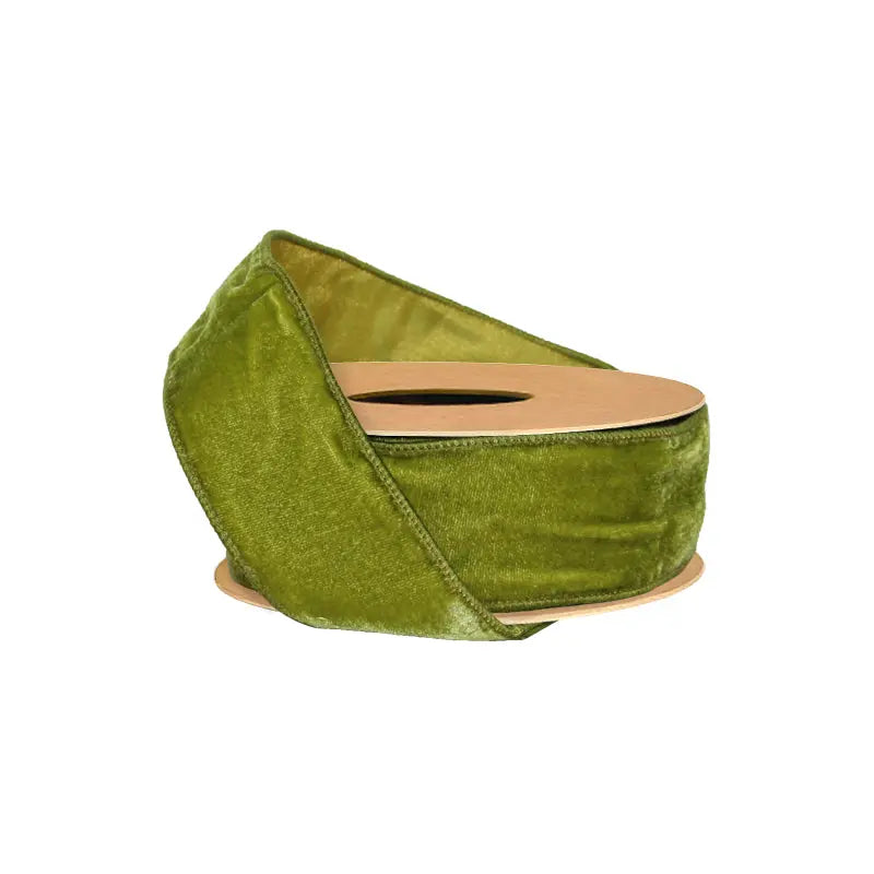 2 1/2" Wired Premium Velvet Ribbon w/ Tissue Back | Apple Green | 10 Yard Roll
