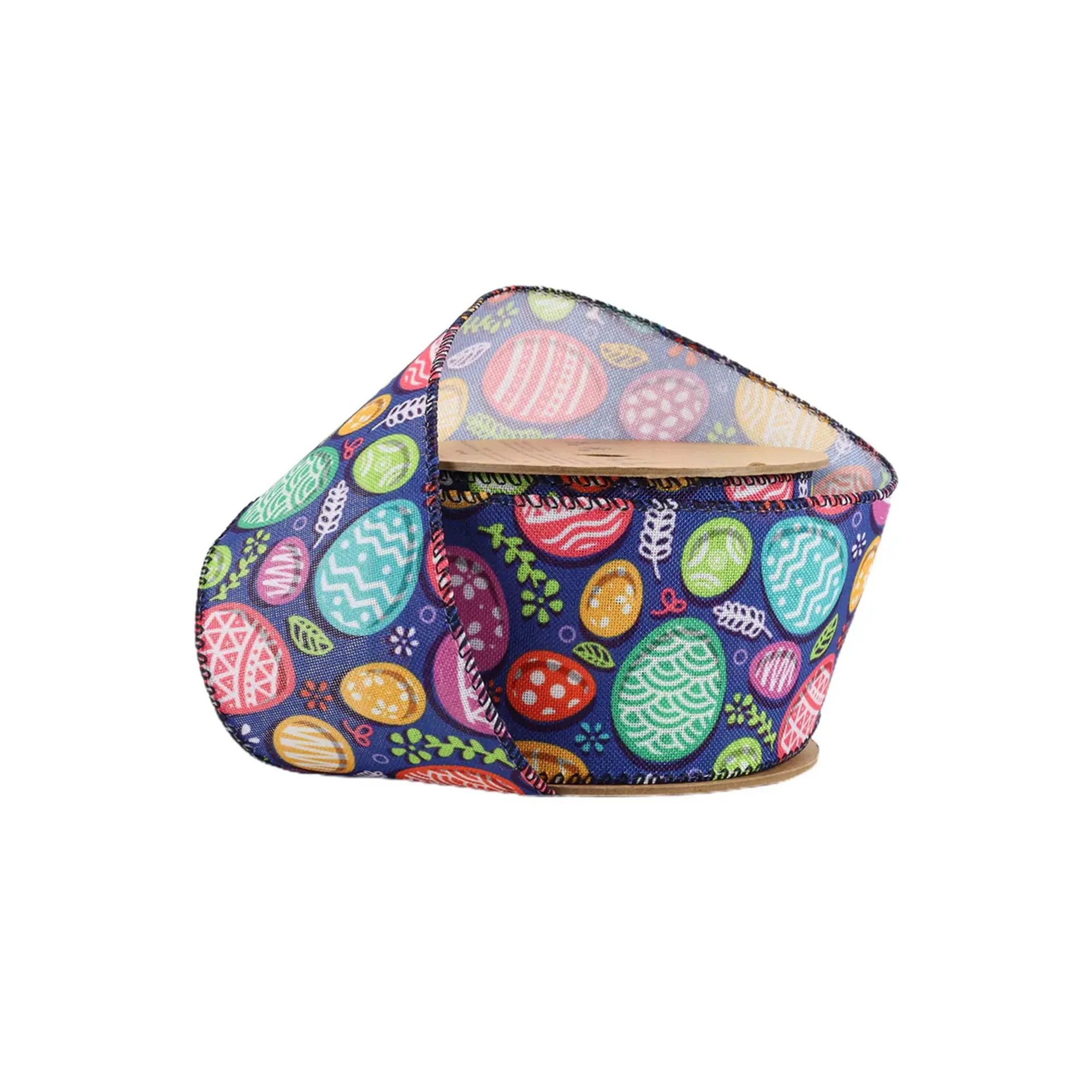 • Easter Elegance: Our 2 1/2" Wired Ribbon is adorned with charming multi-colored Easter eggs on a vivid blue background, adding a festive and whimsical touch to your Easter-themed crafts and decorations.