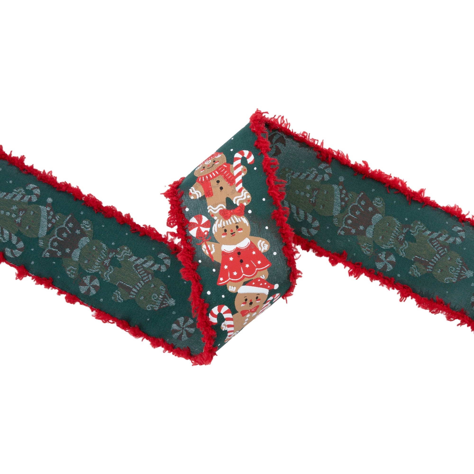 2 1/2" Wired Ribbon | Gingerbread Man/Candy Cane with Fuzzy Edge | 10 Yard Spool