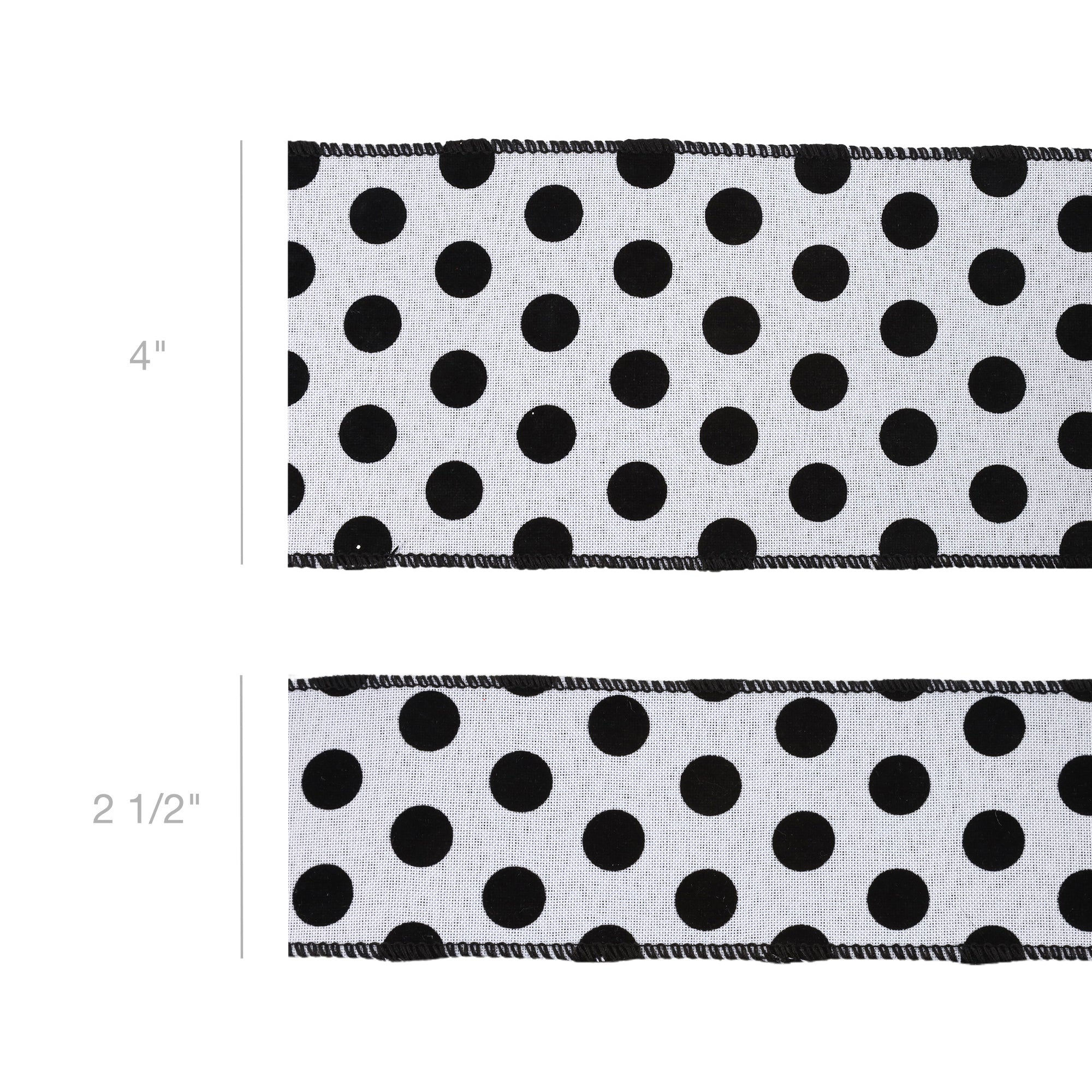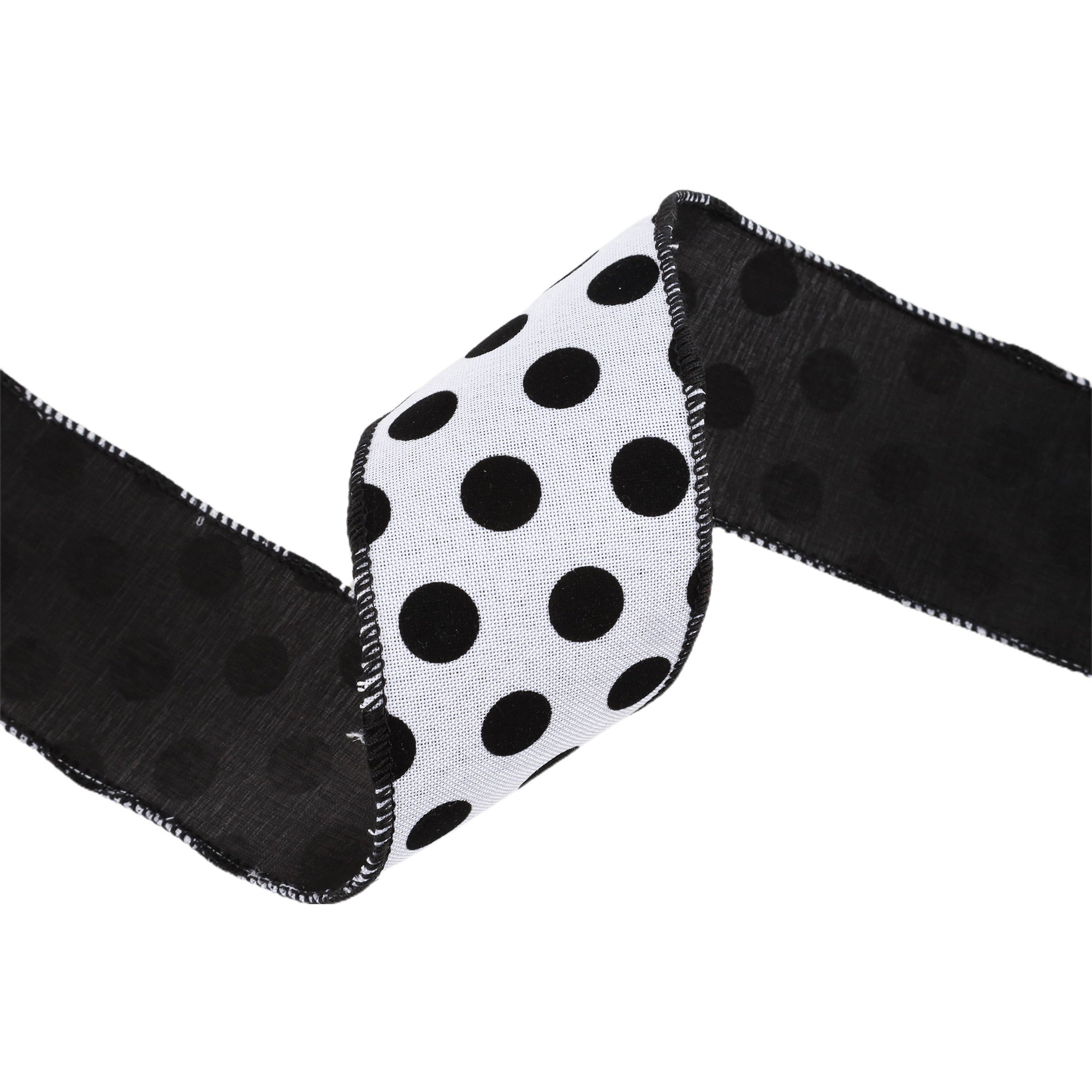 • Festive Design: This 2 1/2" wired ribbon features glittered dots a striking black backing, perfect for adding a spooky yet stylish touch to any decoration.