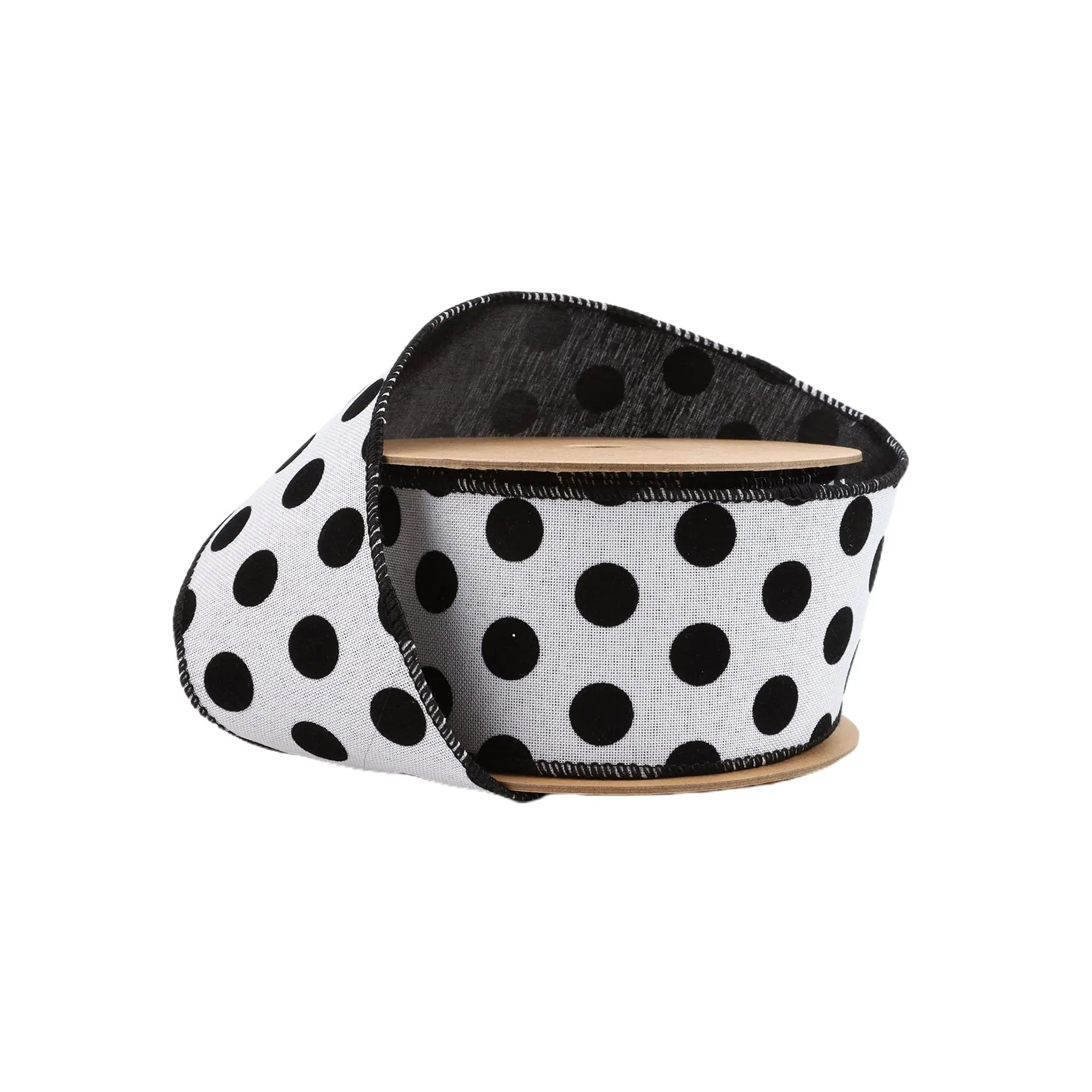 2 1/2" Wired Ribbon | Glittered Dots w/ Black Backing | 10 Yard Roll