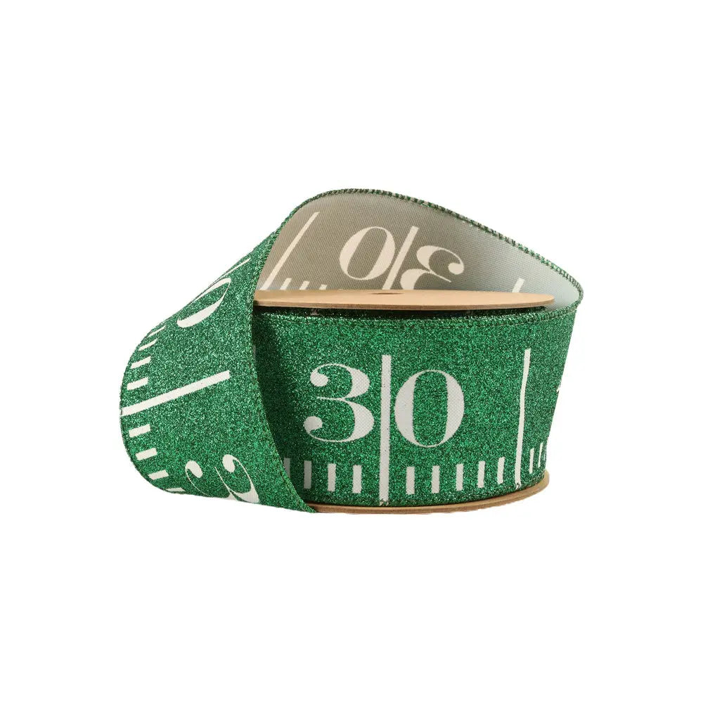 2 1/2" Wired Ribbon | Green Glitter Football Yardage | 10 Yard Roll