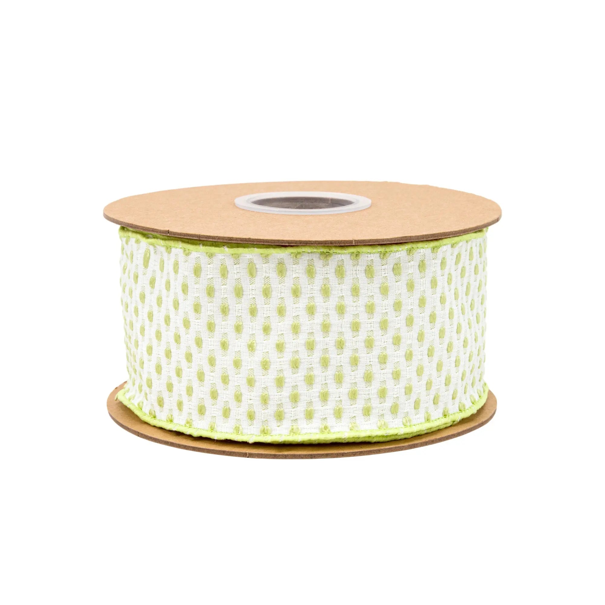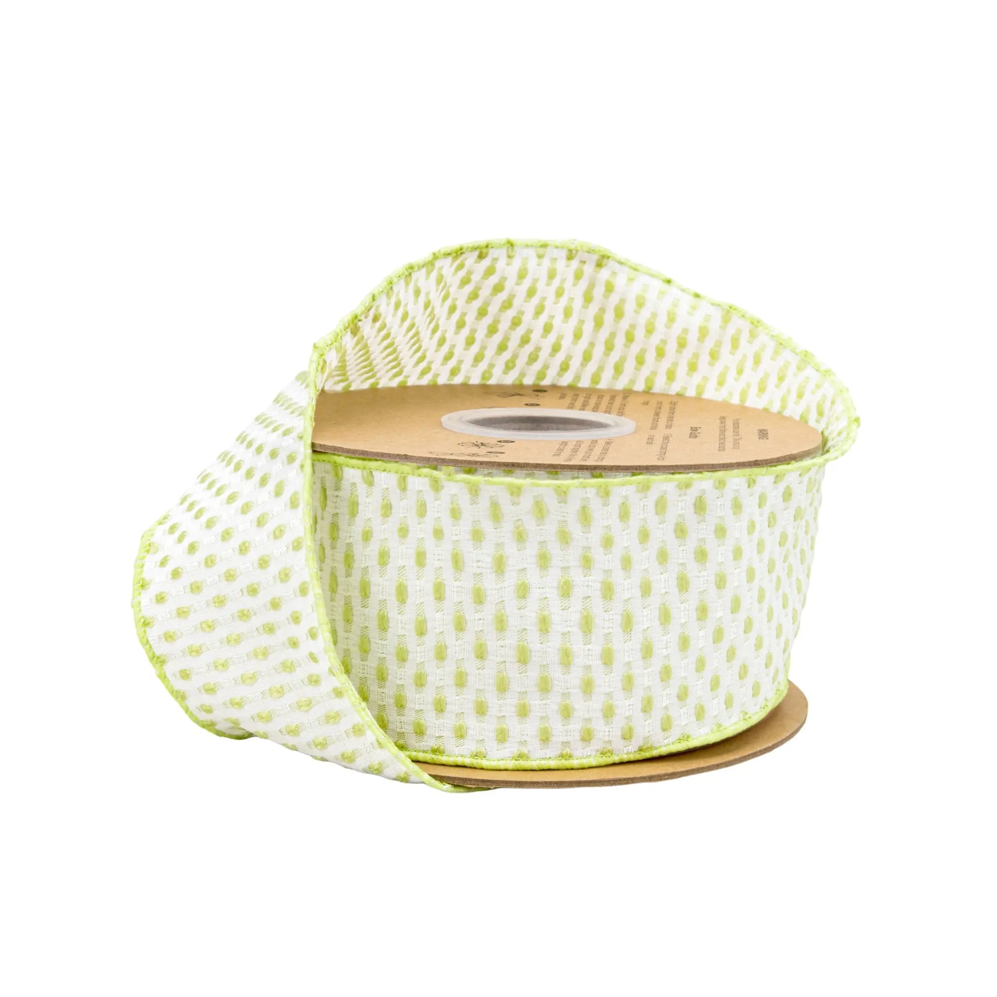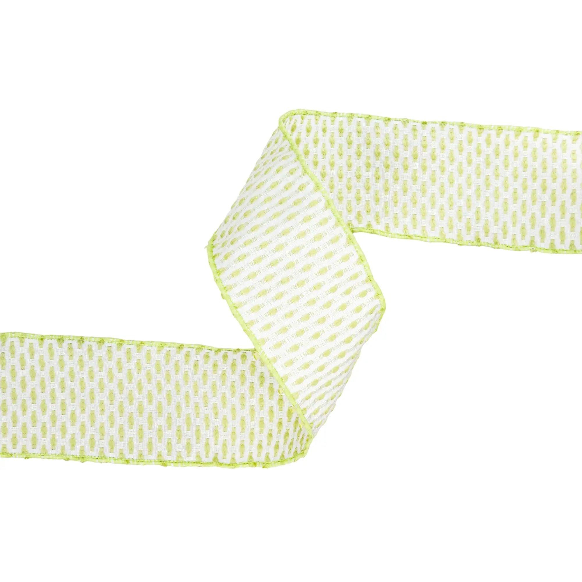 2 1/2" Wired Ribbon | Lime Green/White Woven | 10 Yard Roll