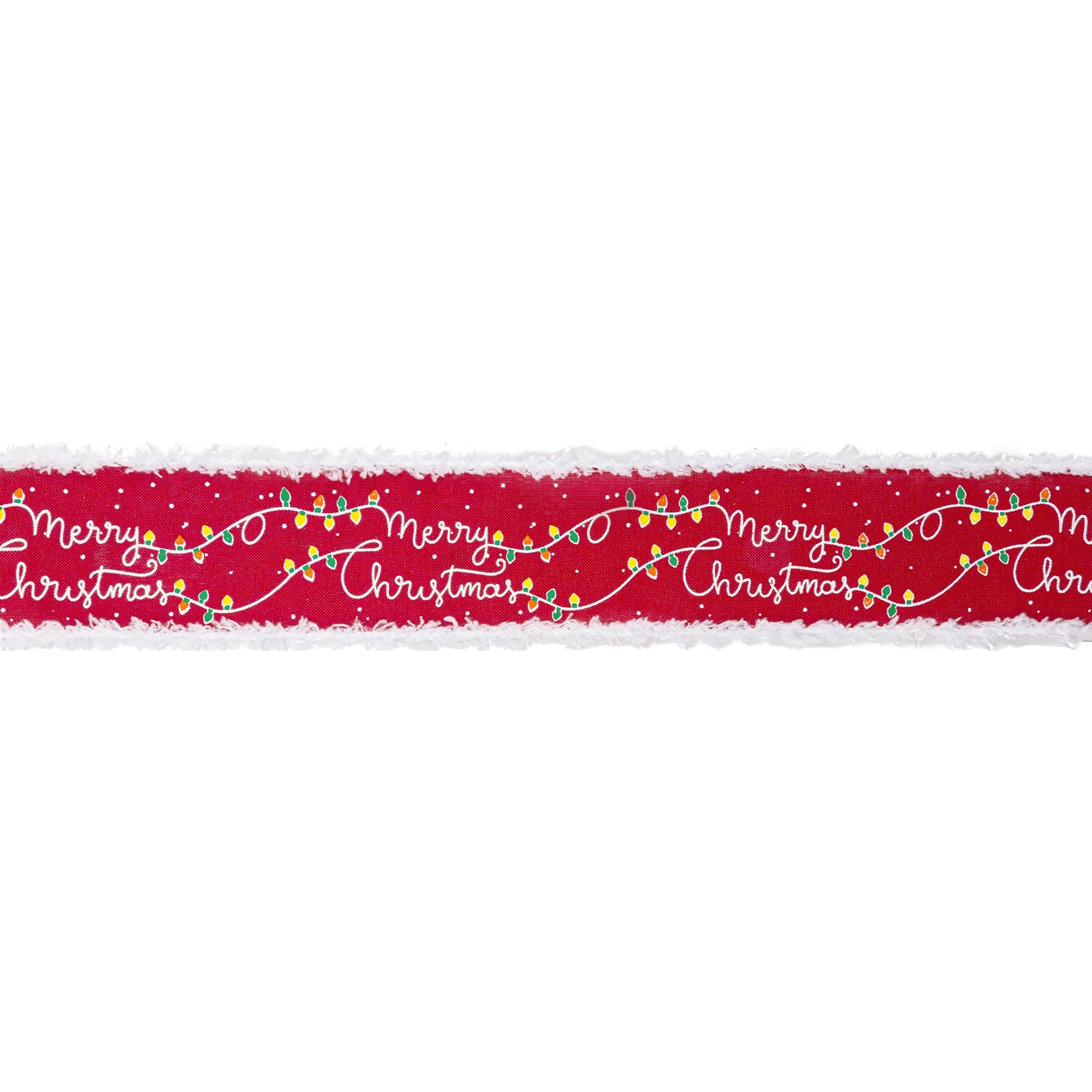 2 1/2" Wired Ribbon | Merry Christmas with Fuzzy Edge | 10 Yard Spool