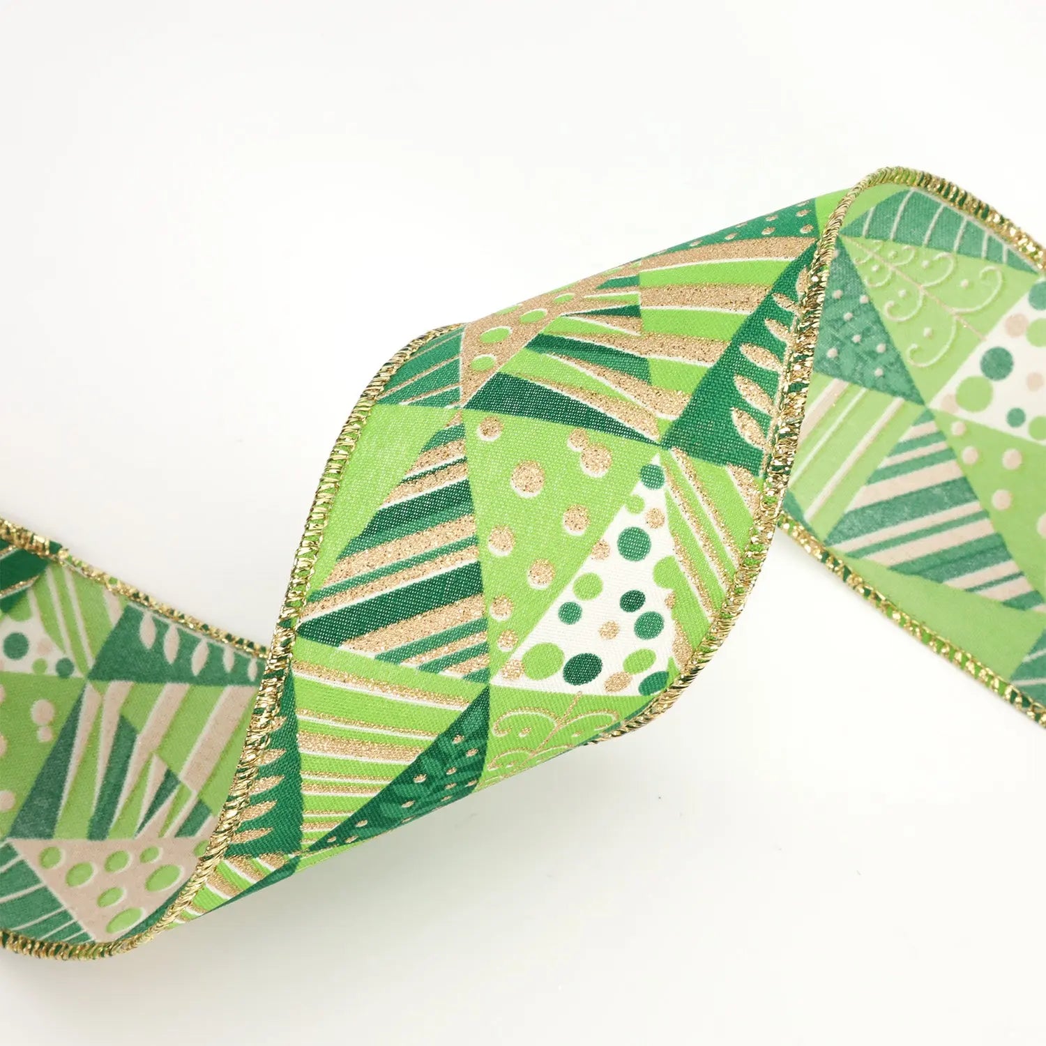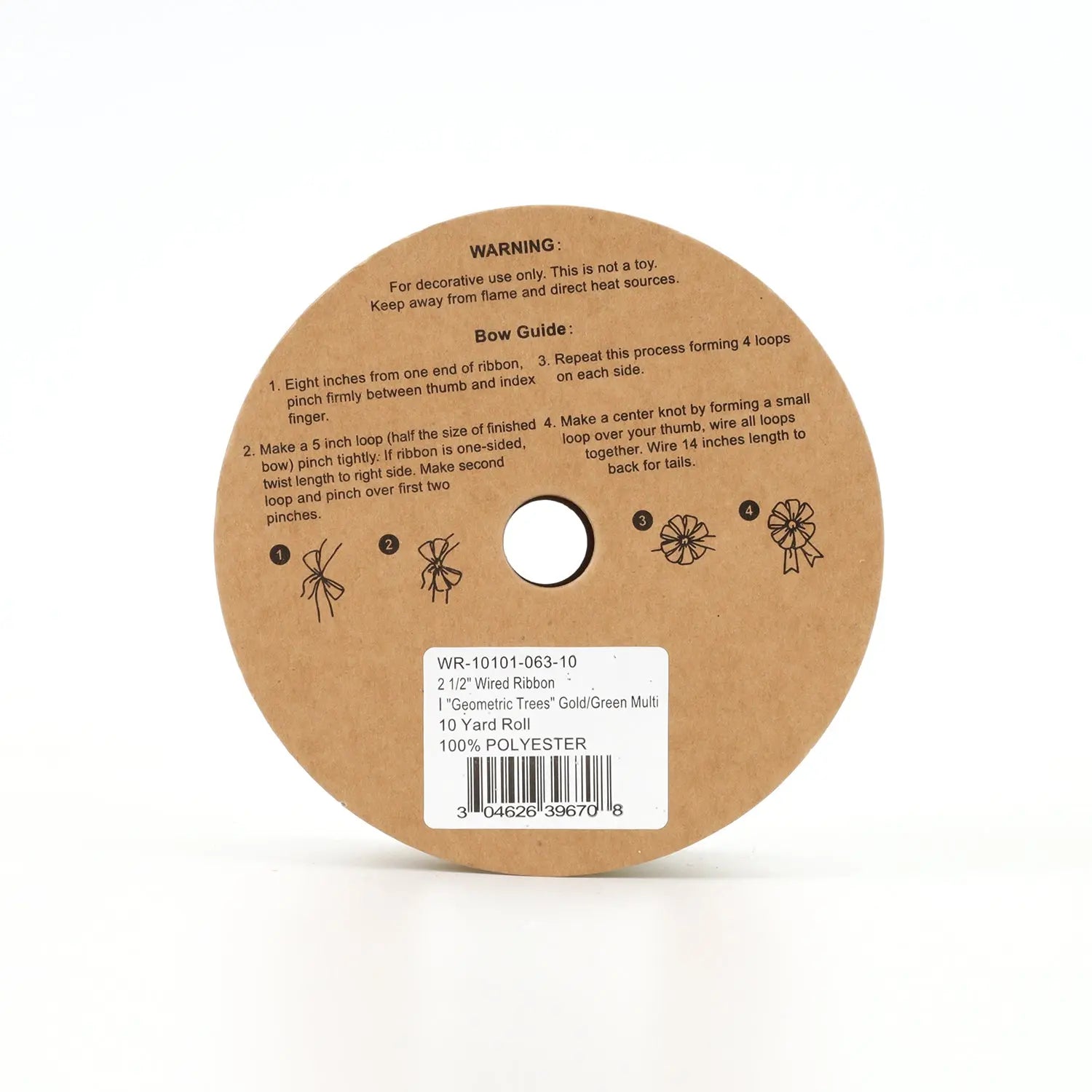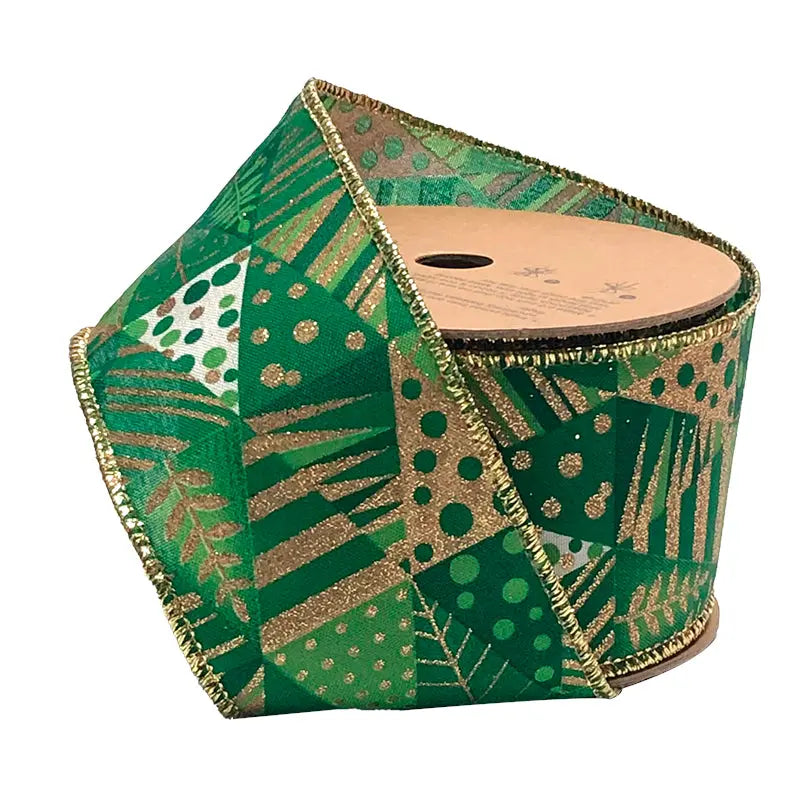 2 1/2" Wired Ribbon | "Geometric Trees" Gold/Green Multi | 10 Yard Roll
