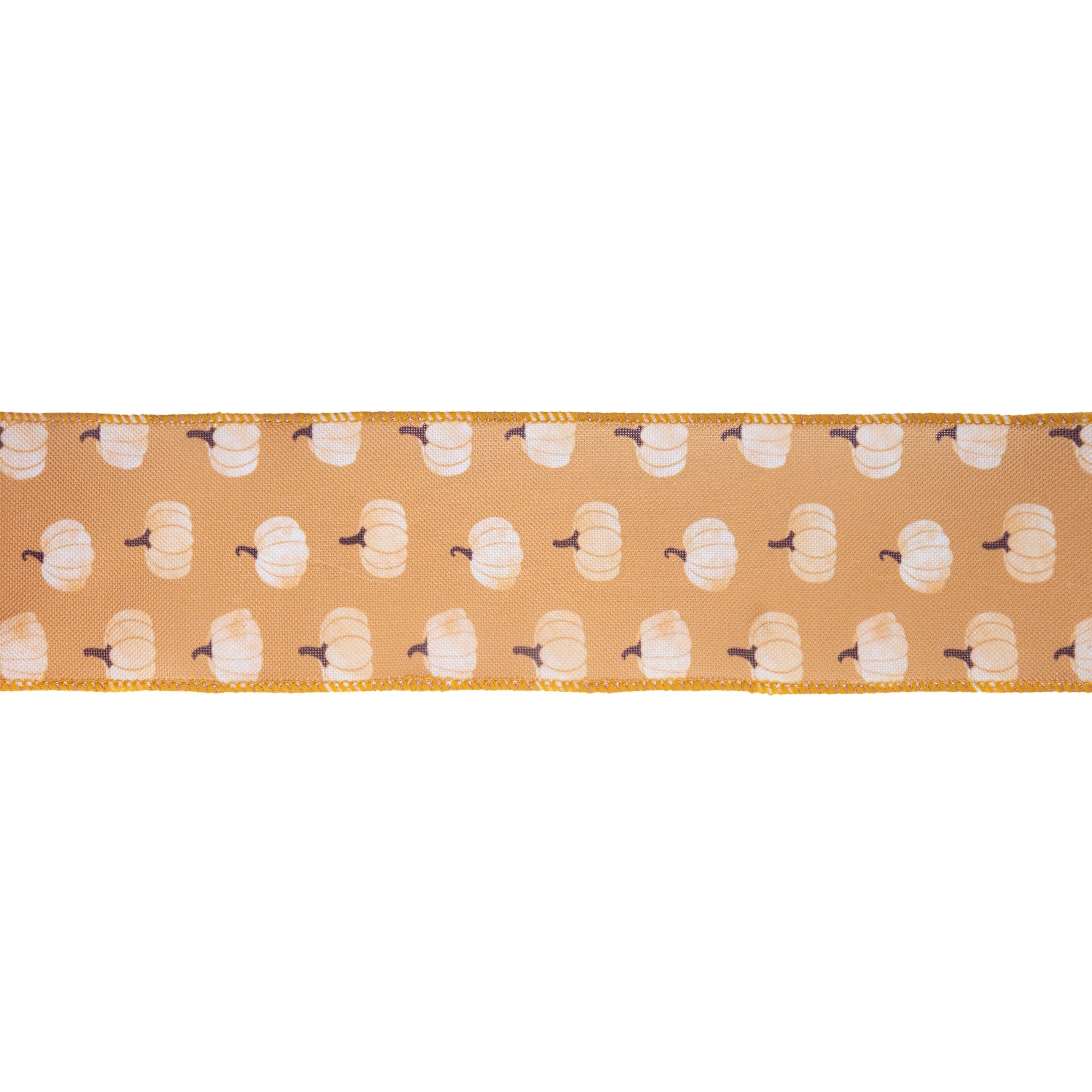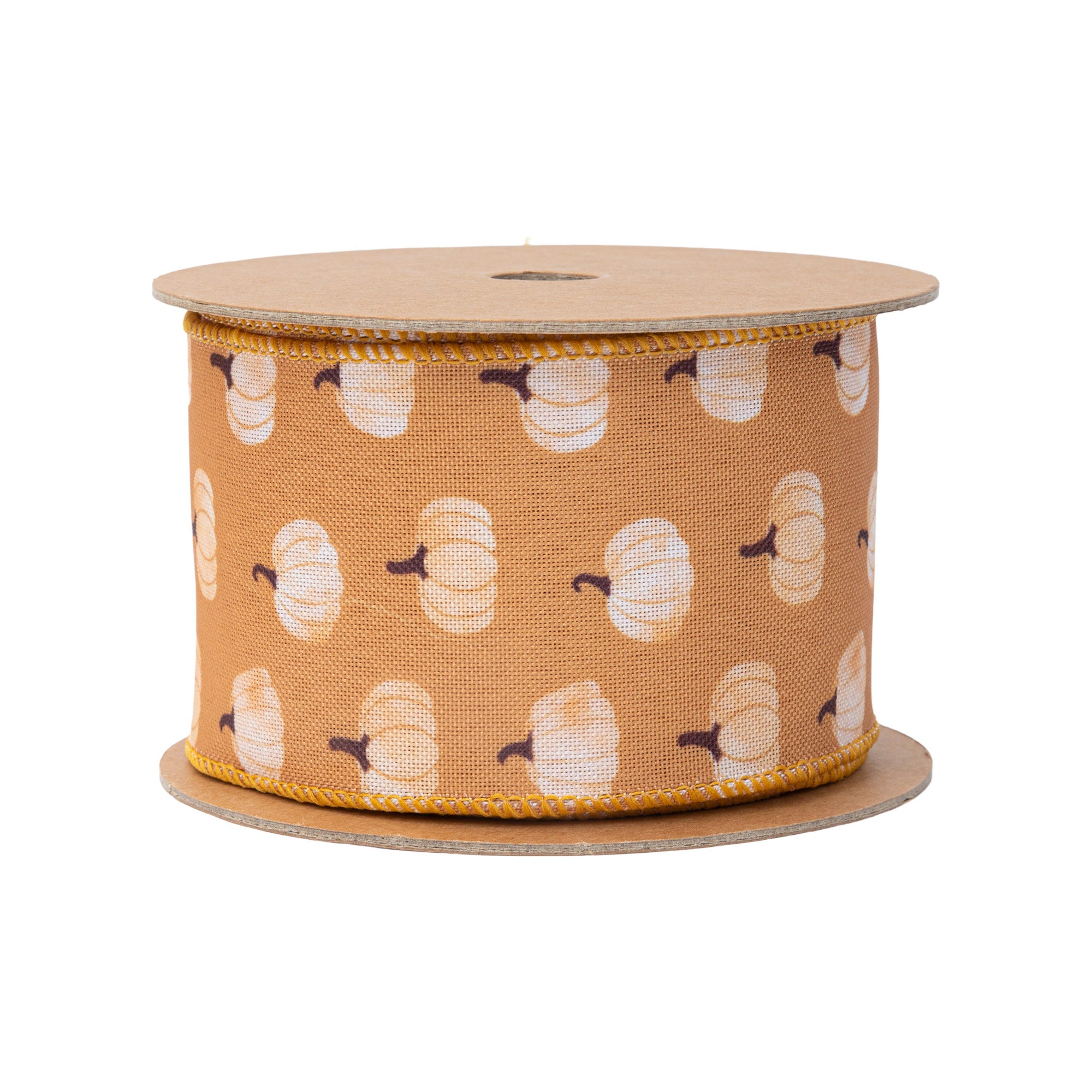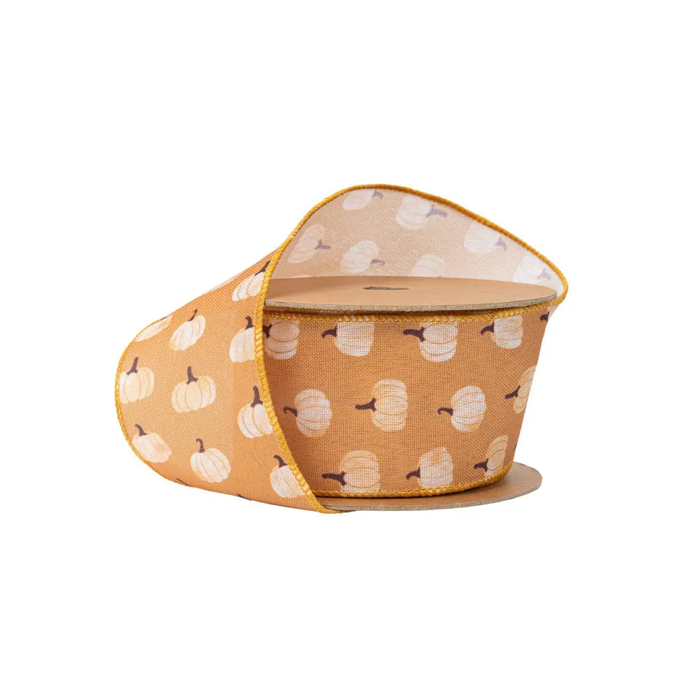 2 1/2" Wired Ribbon | Natural Pumpkins | 10 Yard Roll