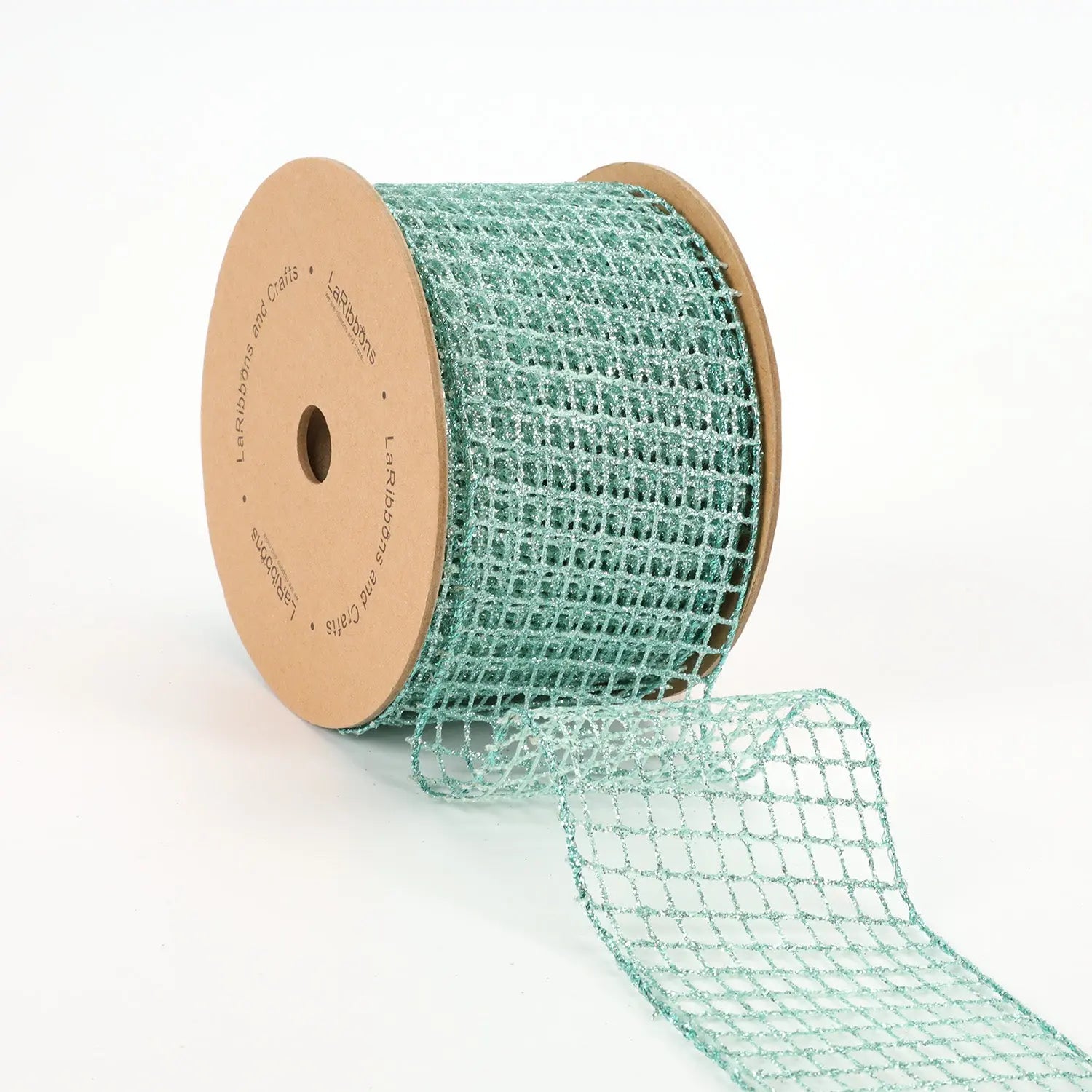 2 1/2" Wired Ribbon | "Netting" Turquoise | 10 Yard Roll