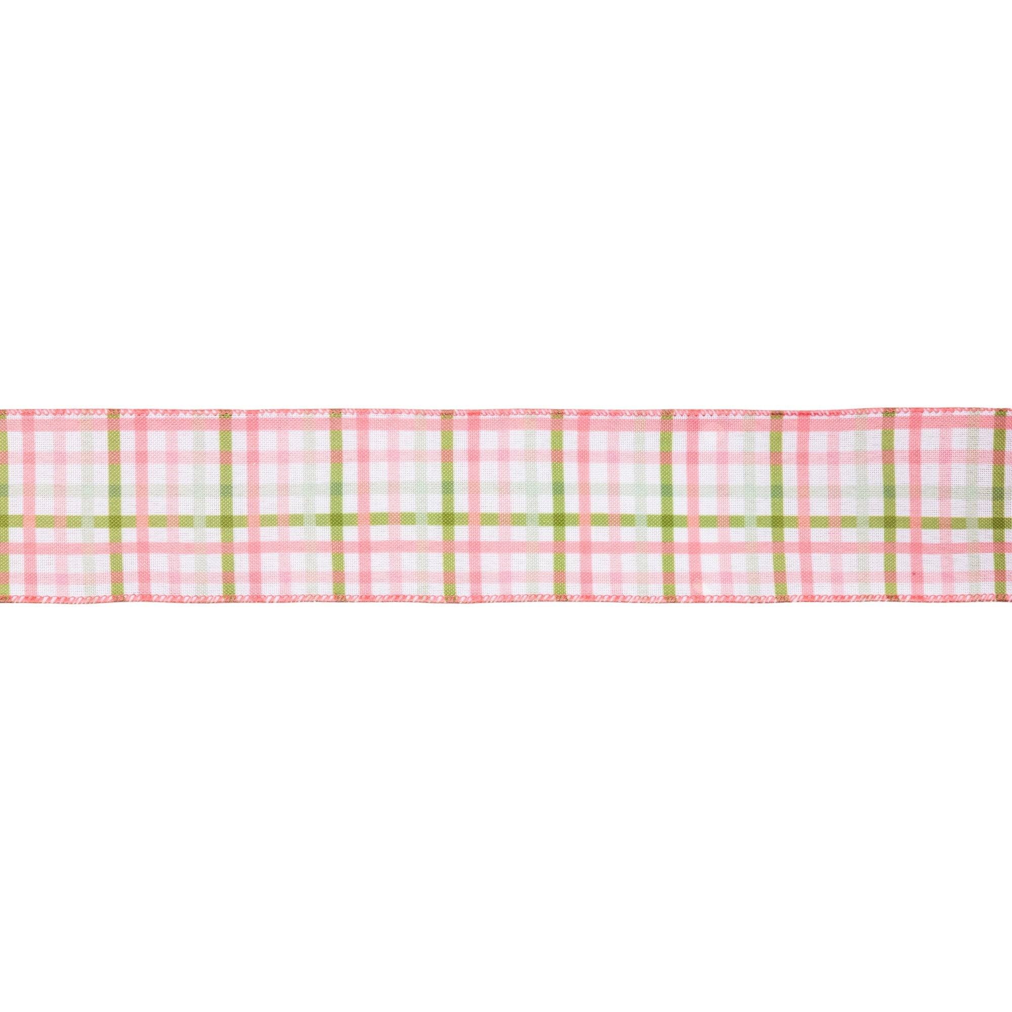 2 1/2" Wired Ribbon | Pink and Green Checked Plaid | 10 Yard Roll
