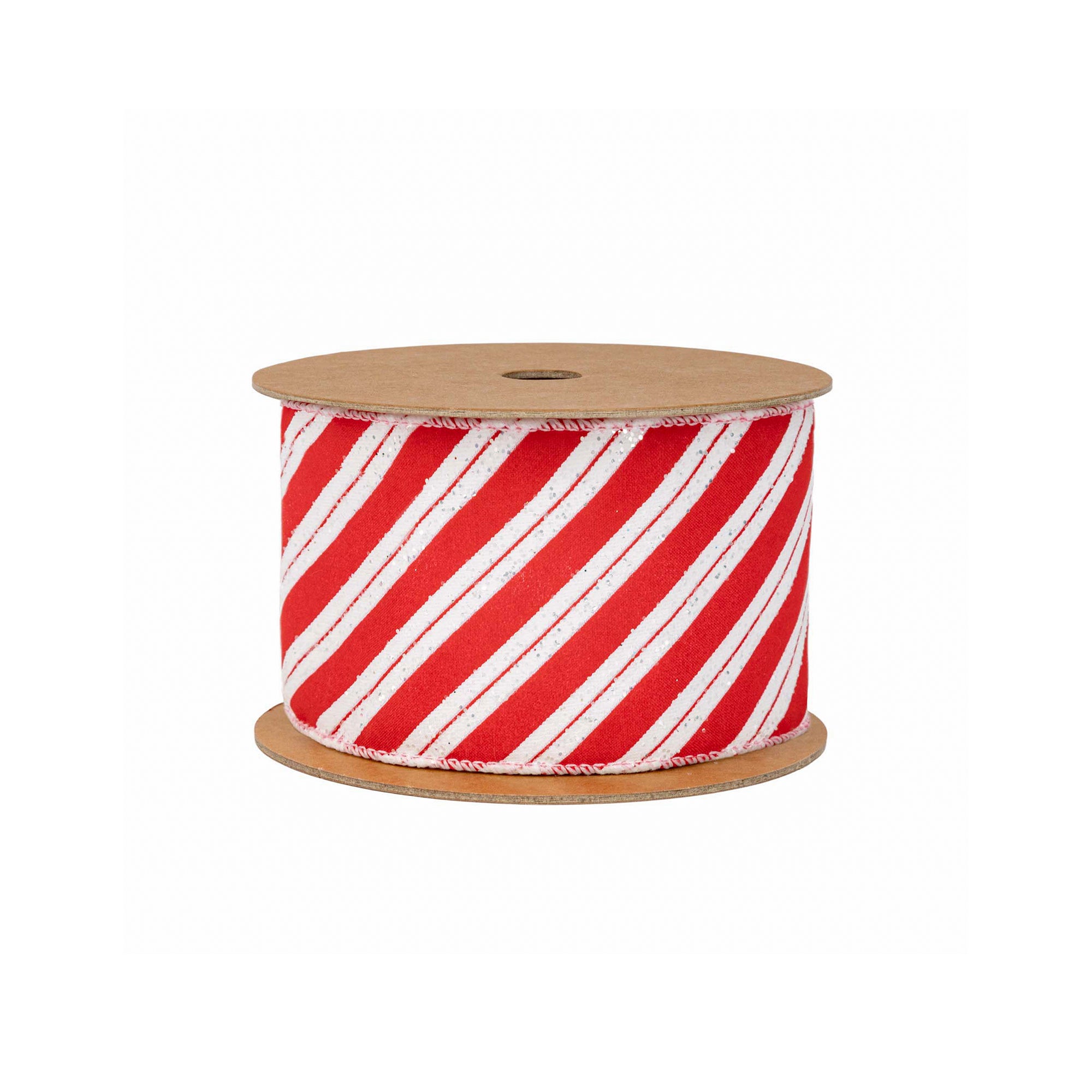2 1/2" Wired Ribbon | Red/White Stripe | 10 Yard Roll