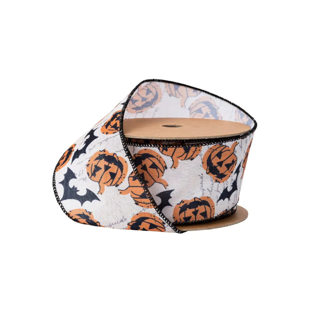 2 1/2" Wired Ribbon | Scary Pumpkin and Bats | 10 Yard Roll