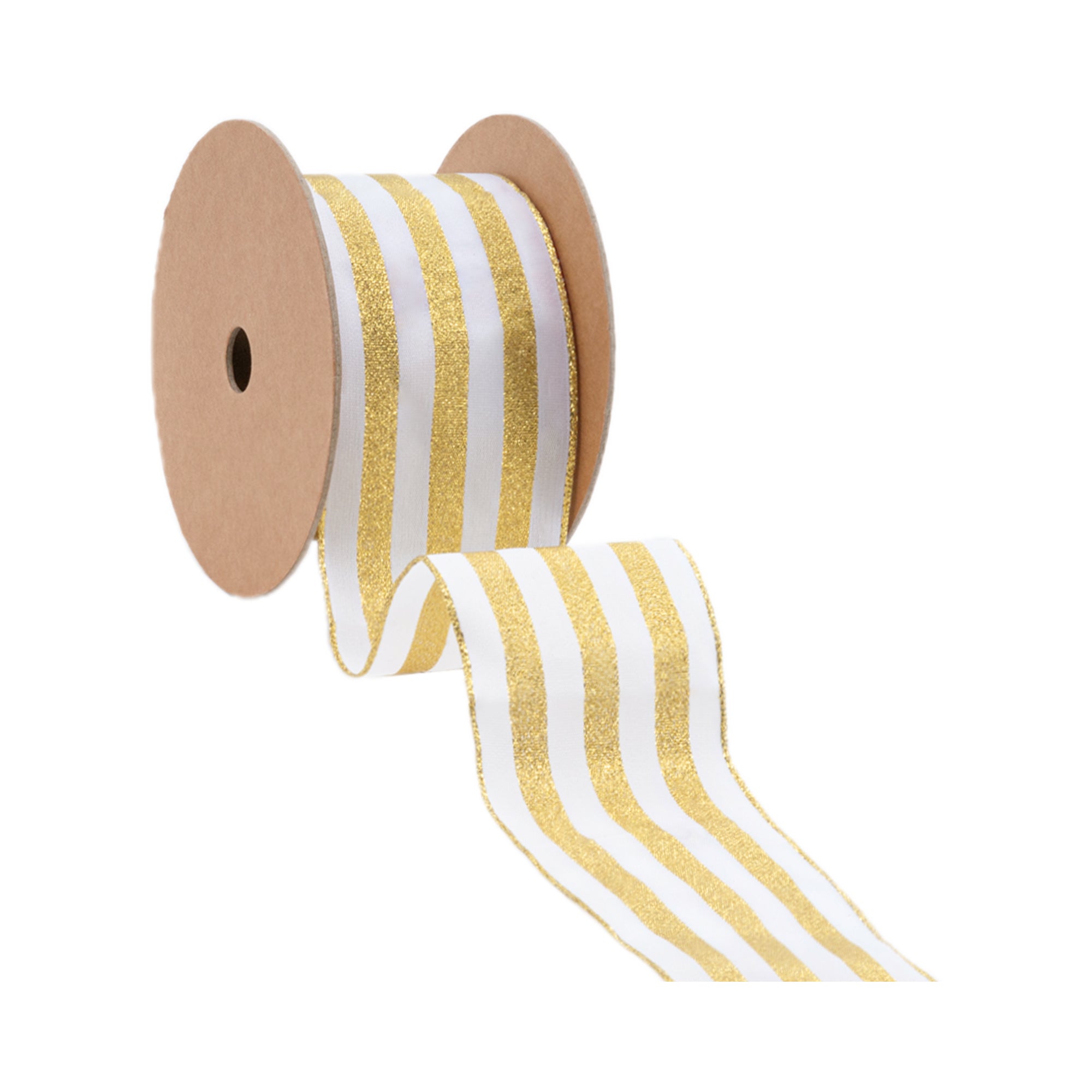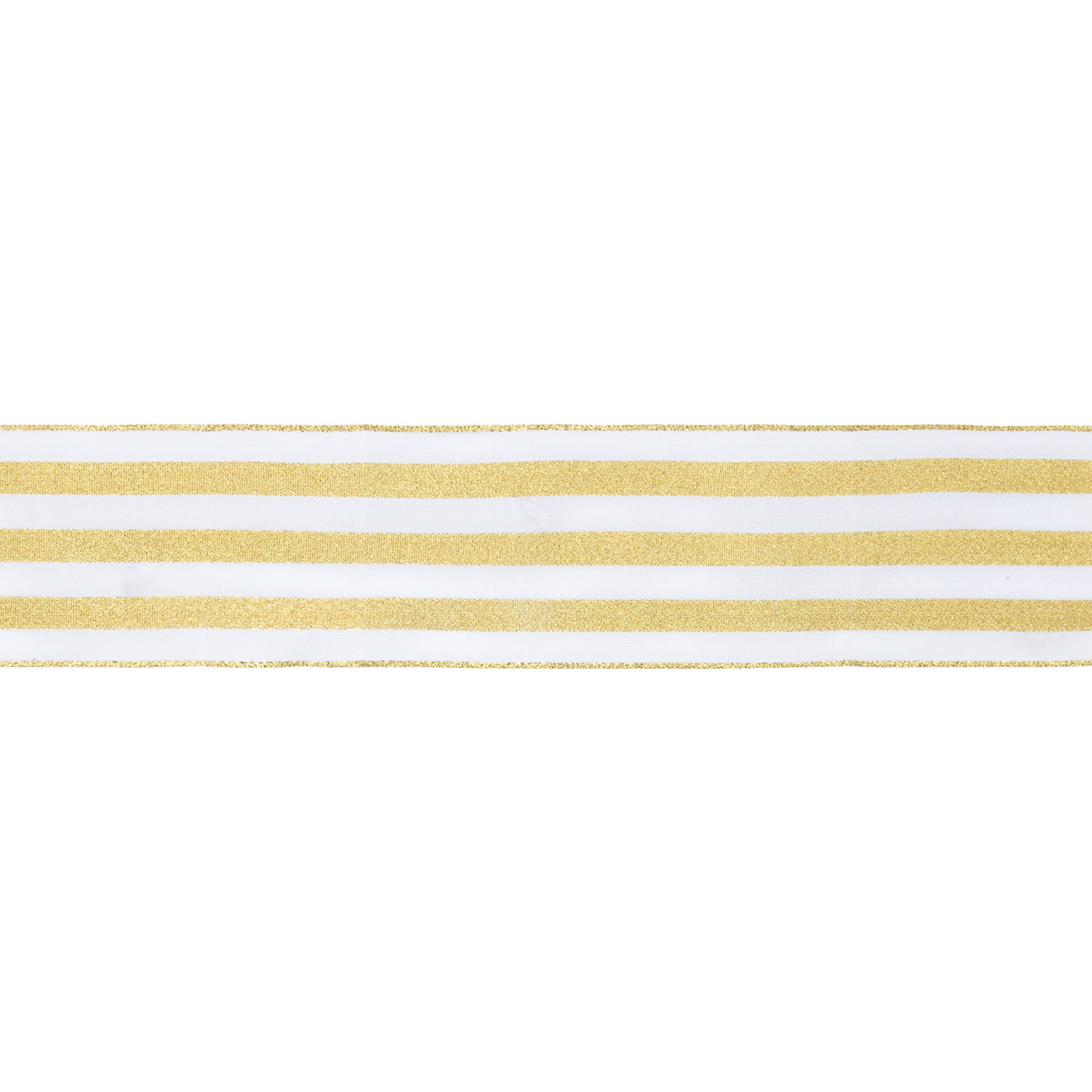 2 1/2" Wired Ribbon | White w Metallic Gold Stripe | 10 Yard Roll
