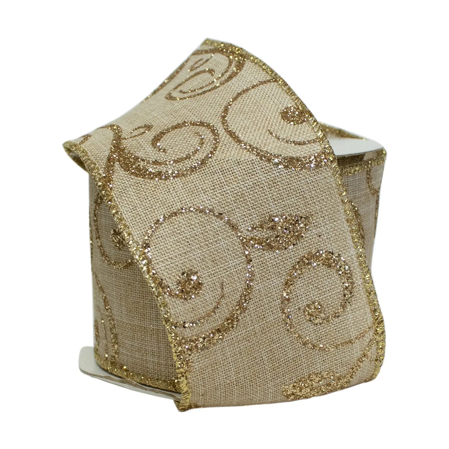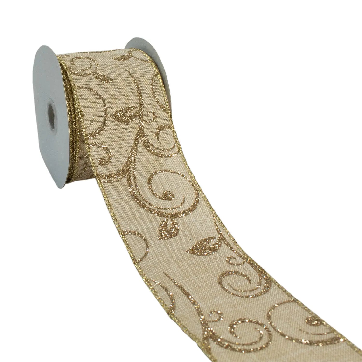 • Elegant Scroll: Add a touch of elegance to your holiday decor with our 2 1/2" Wired Ribbon featuring a stunning gold scroll design on a natural ribbon backdrop. Each roll comes with 10 yards of ribbon, providing ample material to accommodate various decorating needs and creative endeavors.